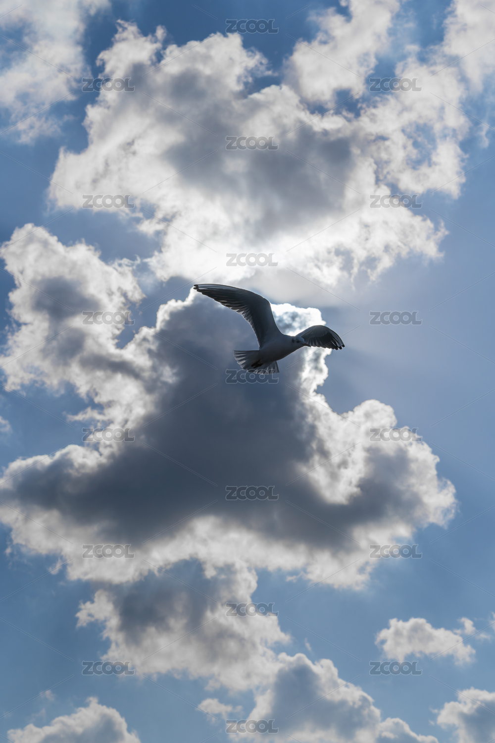 逆光展翅飛翔的海鷗