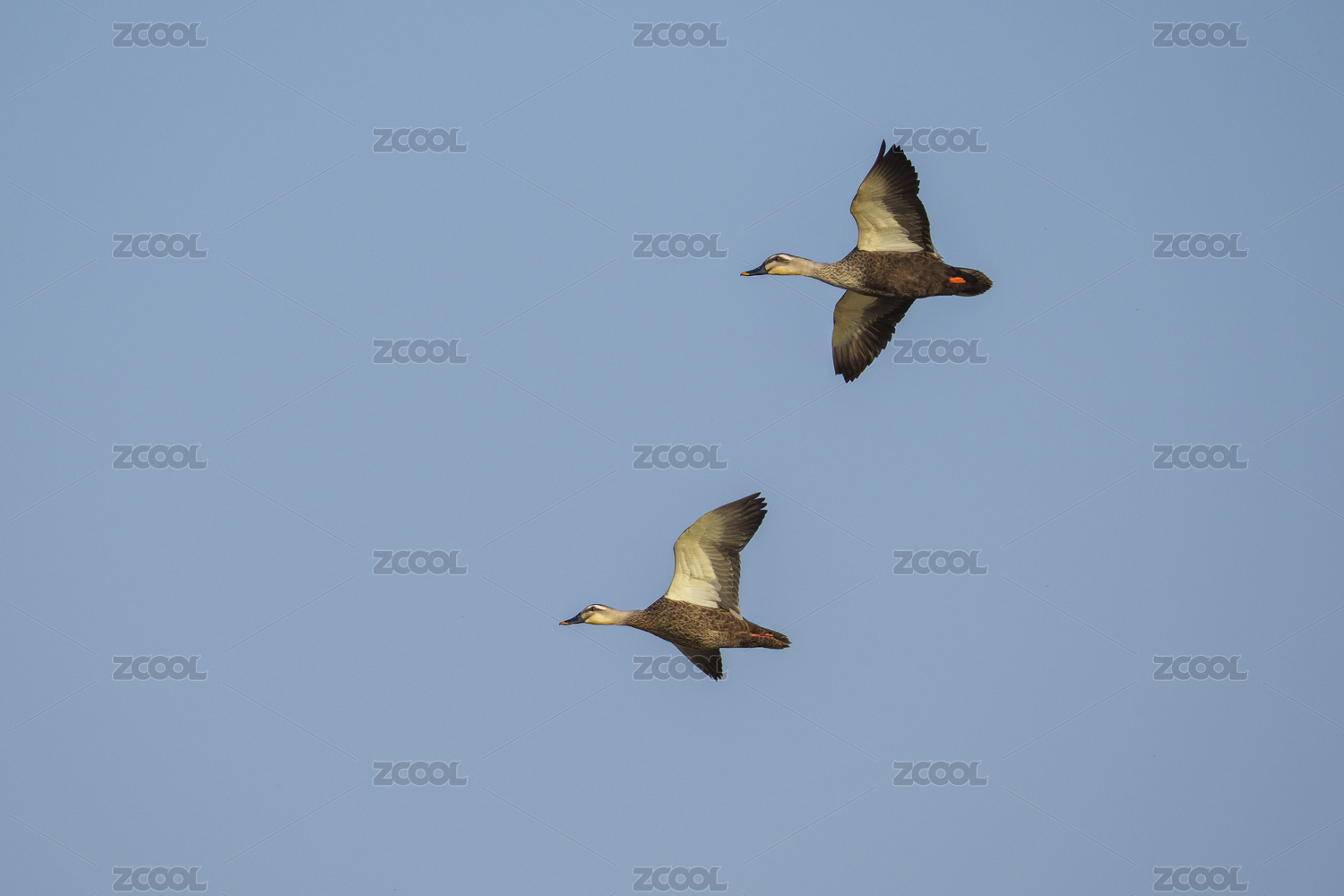 一對野鴨在天空展翅飛翔