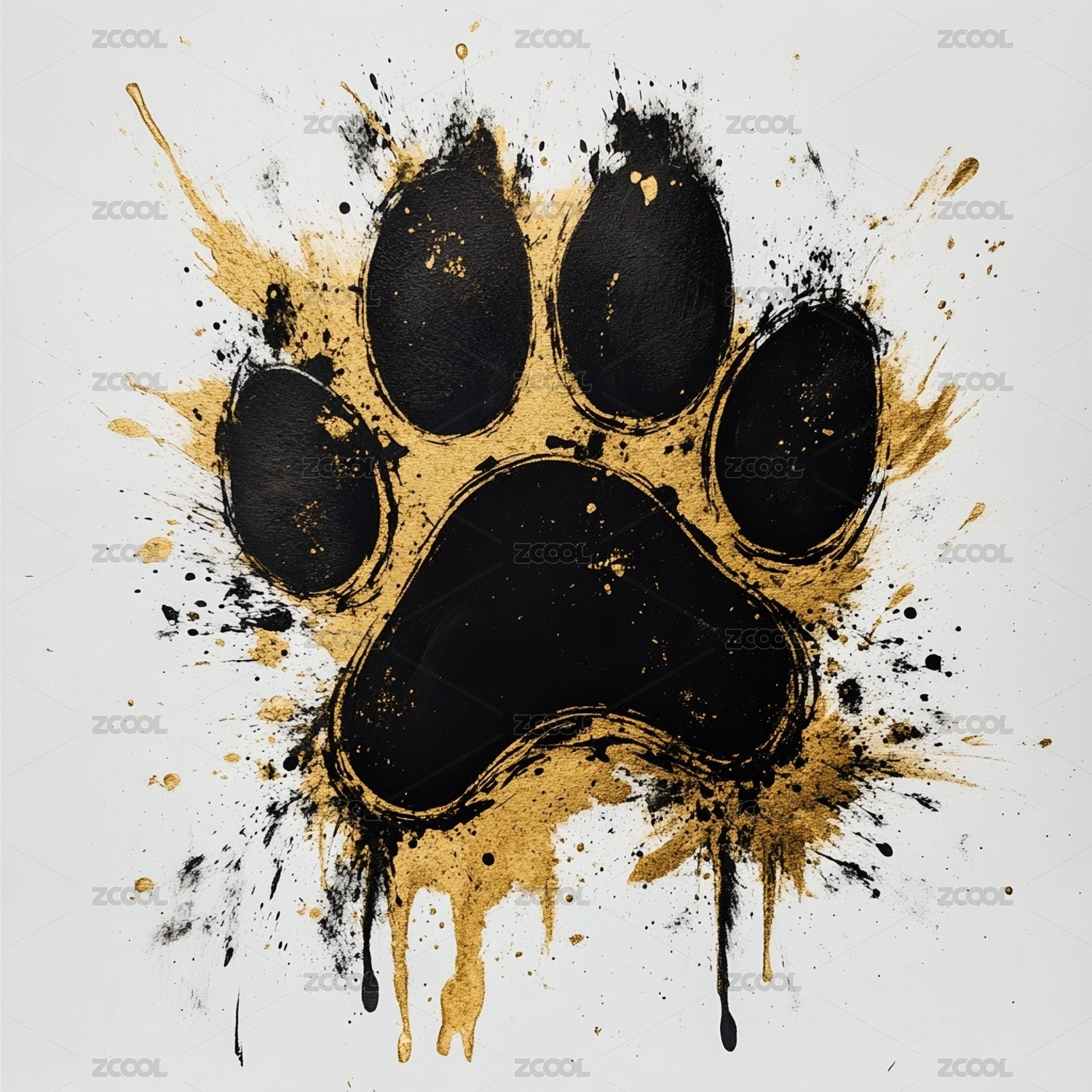 黑金色顏料噴濺貓爪動(dòng)物爪印圖案白色背景