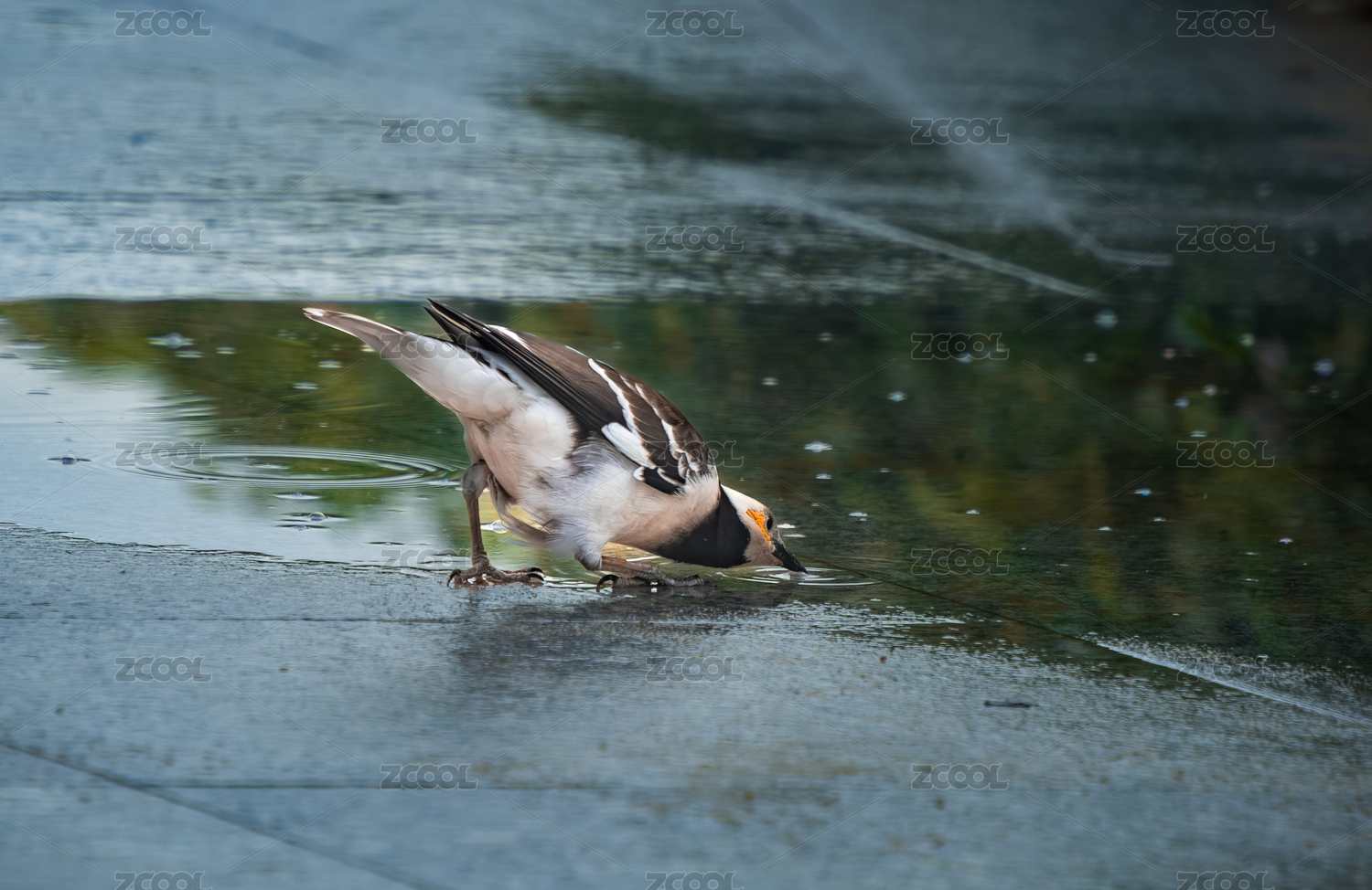 正在喝水的黑領(lǐng)椋鳥(niǎo)