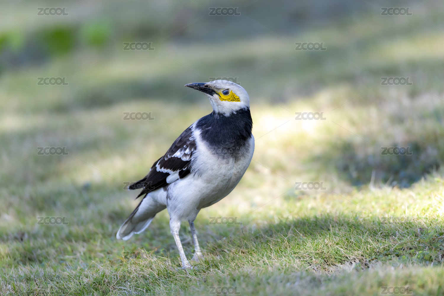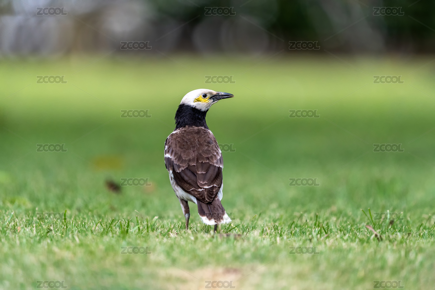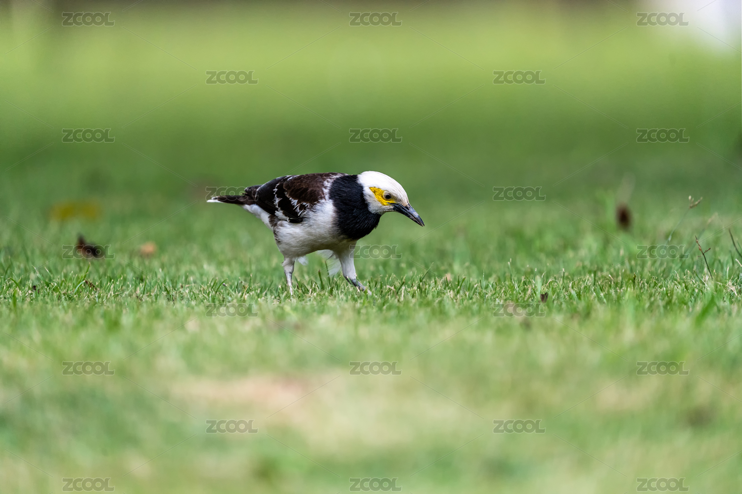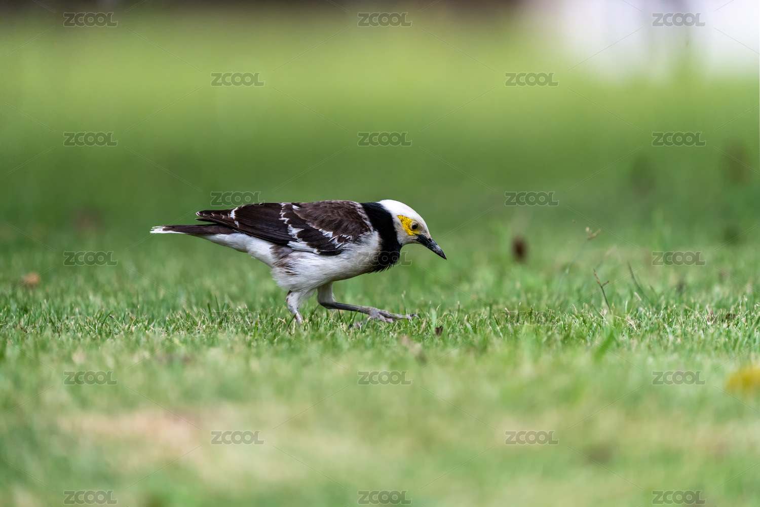 在草地上覓食的黑領(lǐng)椋鳥(niǎo)