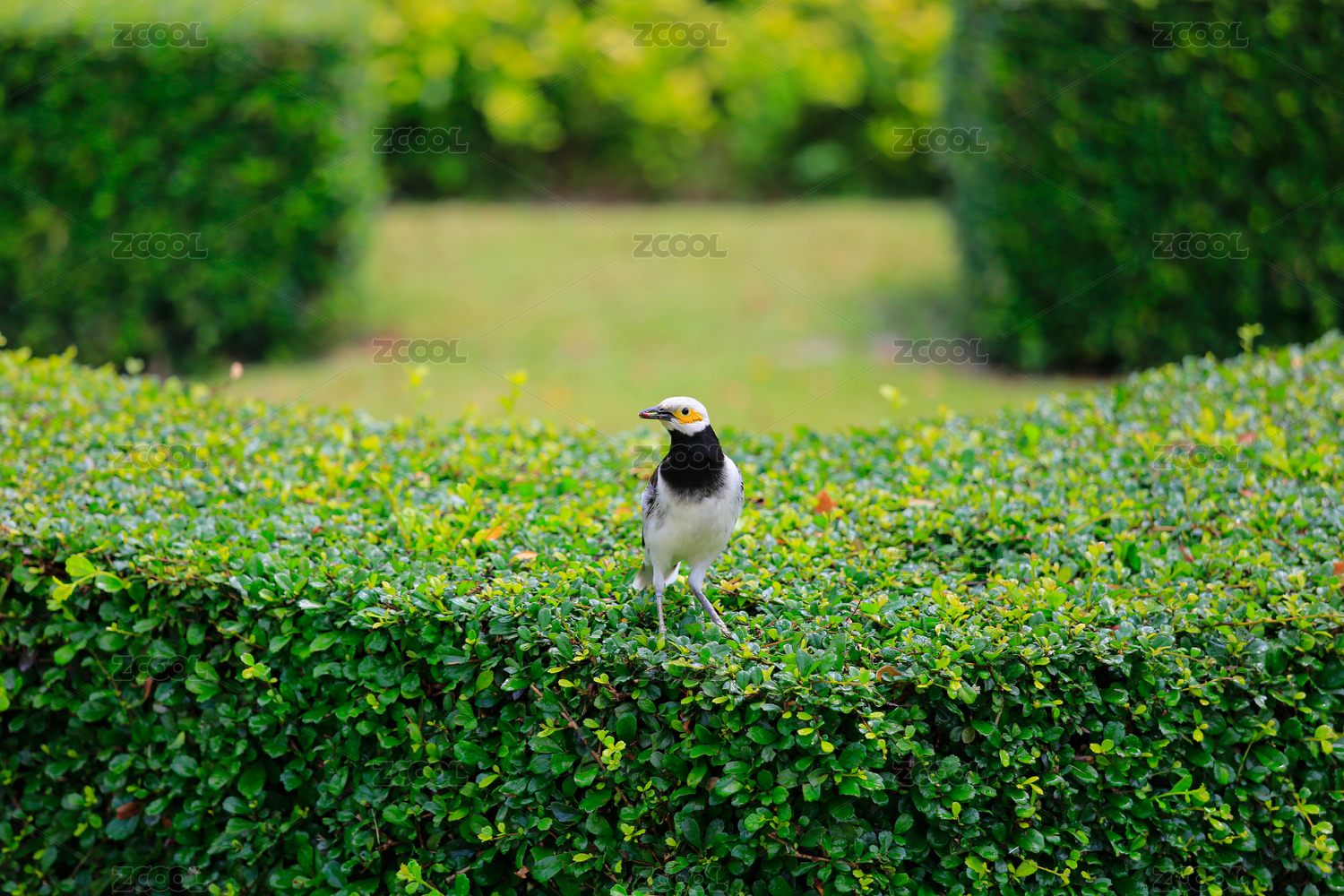 一只黑領(lǐng)椋鳥(niǎo)在花園草叢覓食