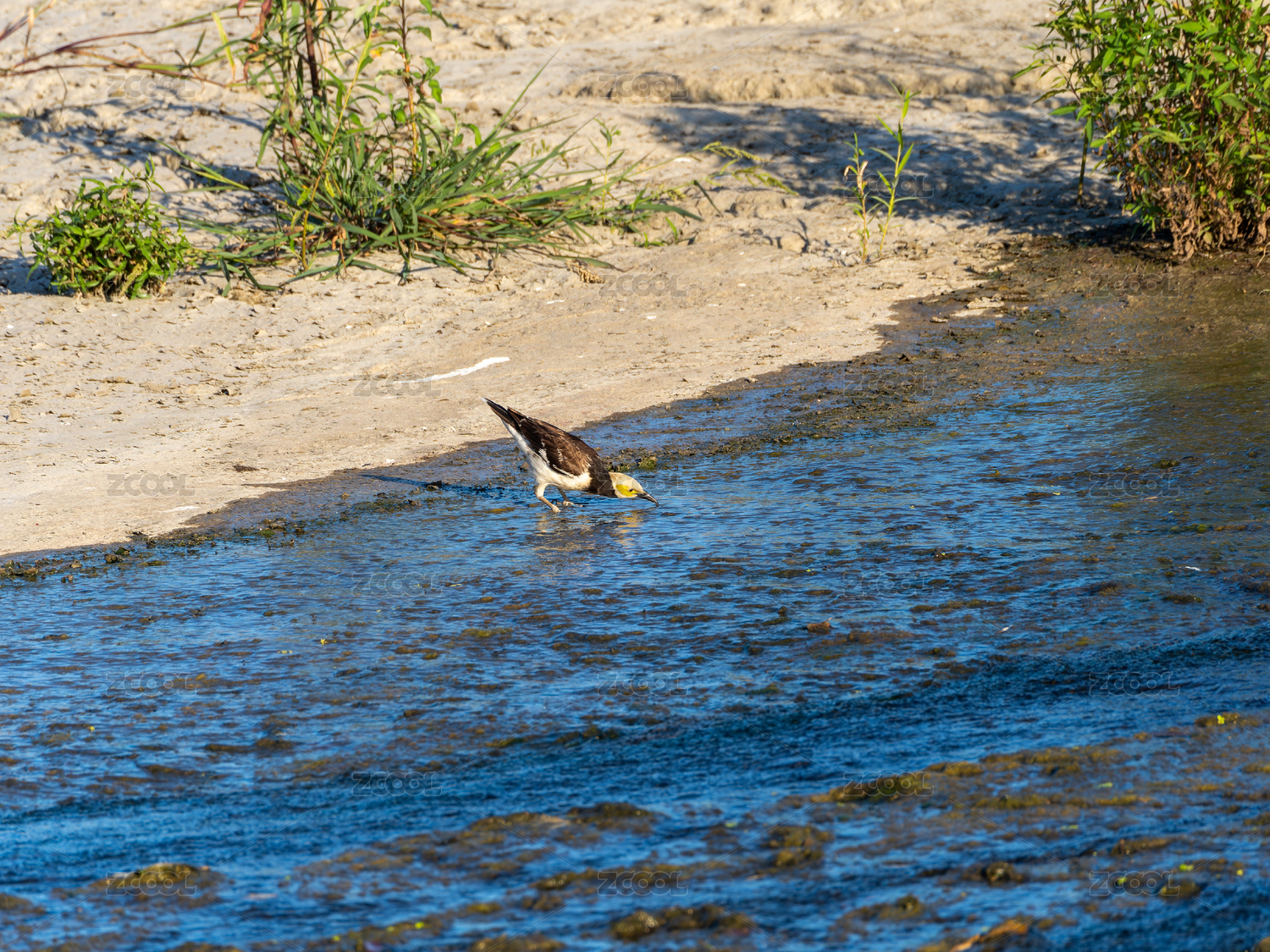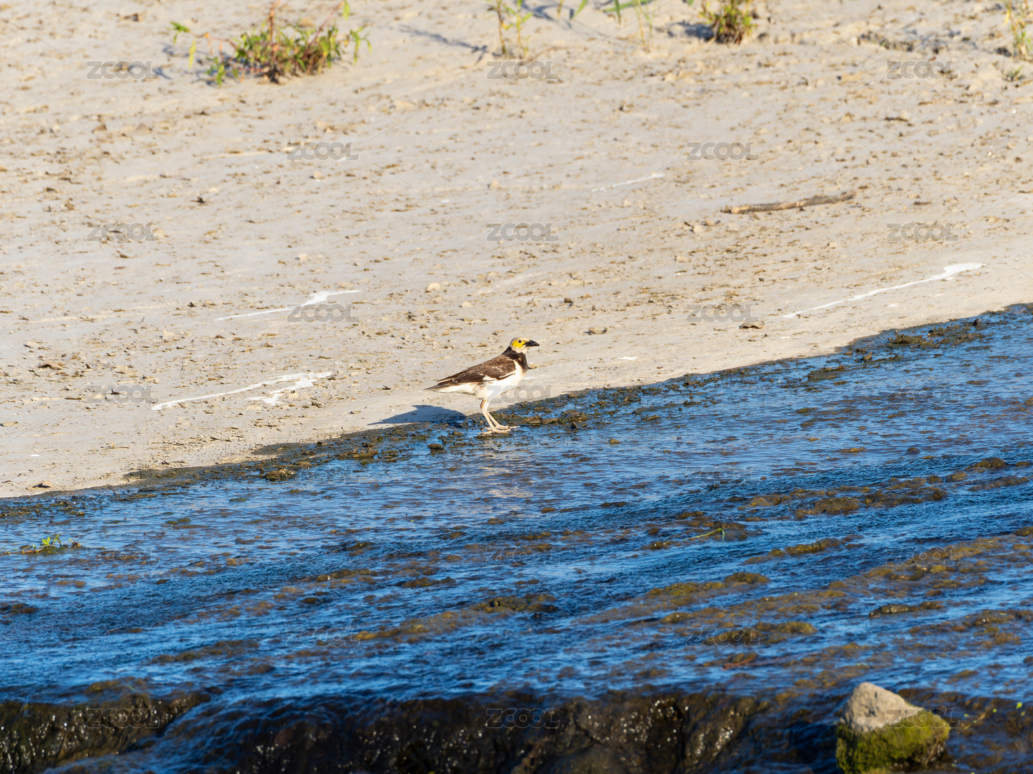 岸邊覓食的黑領(lǐng)椋鳥(niǎo)