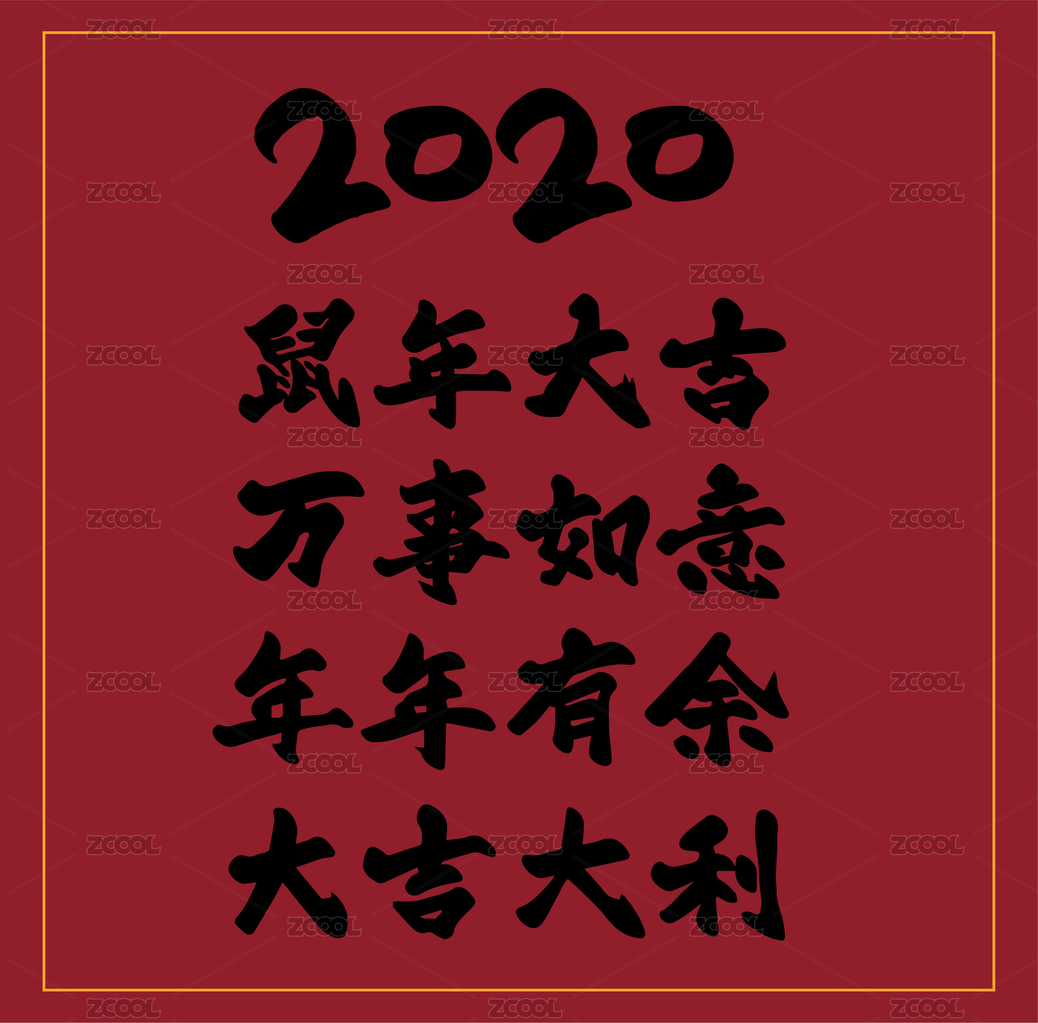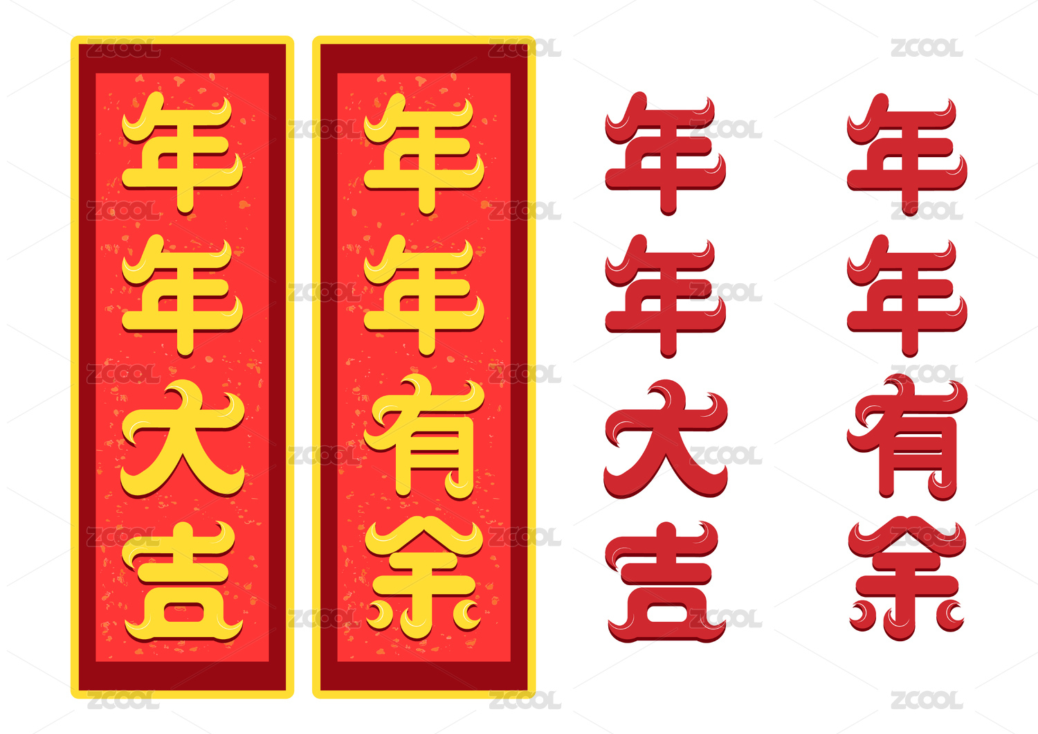 年年大吉原創(chuàng)字體過年對聯(lián)新年祝福語插畫