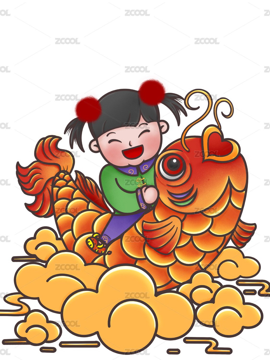 騎著錦鯉的女孩商業(yè)插畫