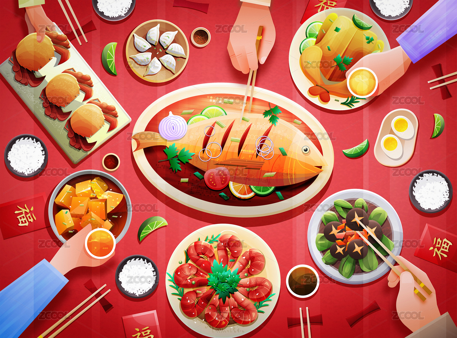 年年有余原創(chuàng)字體過年對聯(lián)新年祝福語插畫