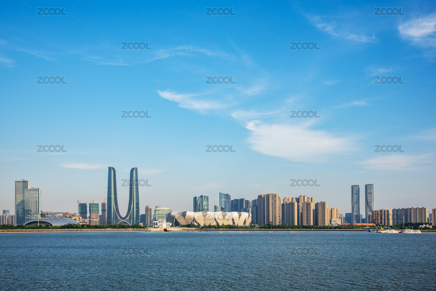 杭州錢塘江風(fēng)光 濱江現(xiàn)代建筑
