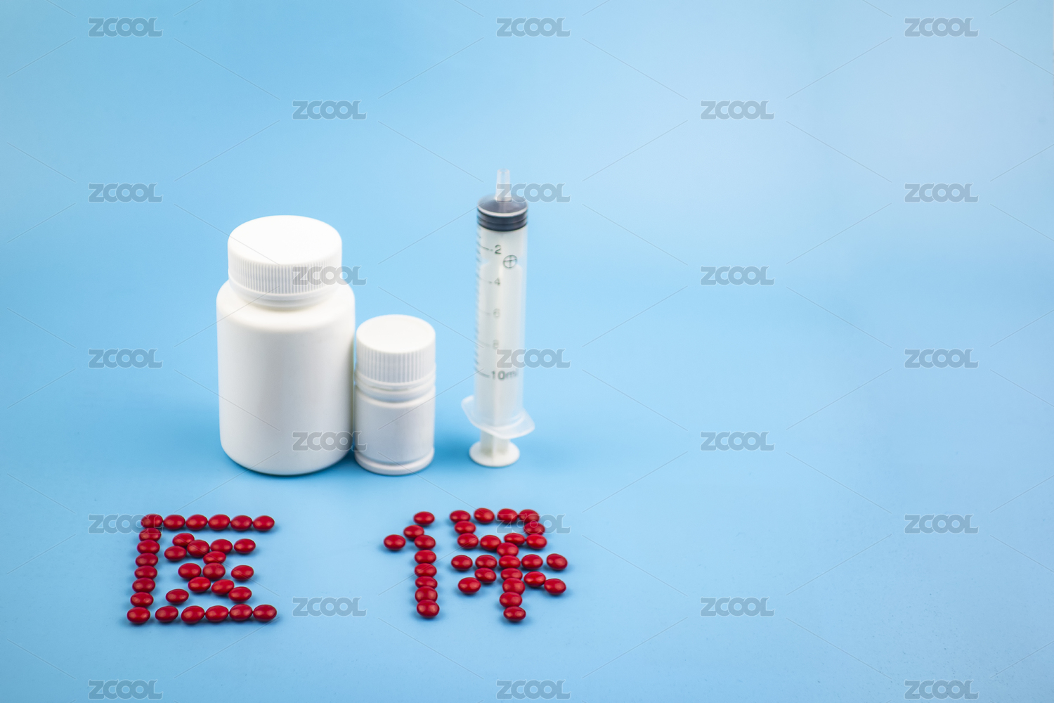 藍色背景中放著各類醫(yī)療藥品