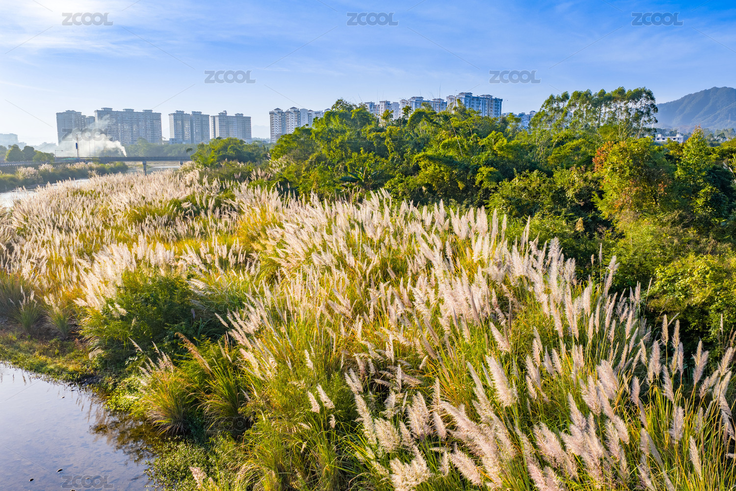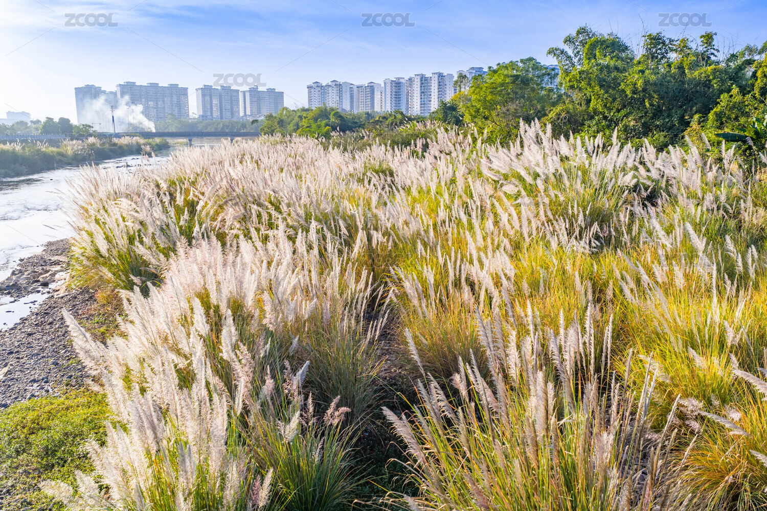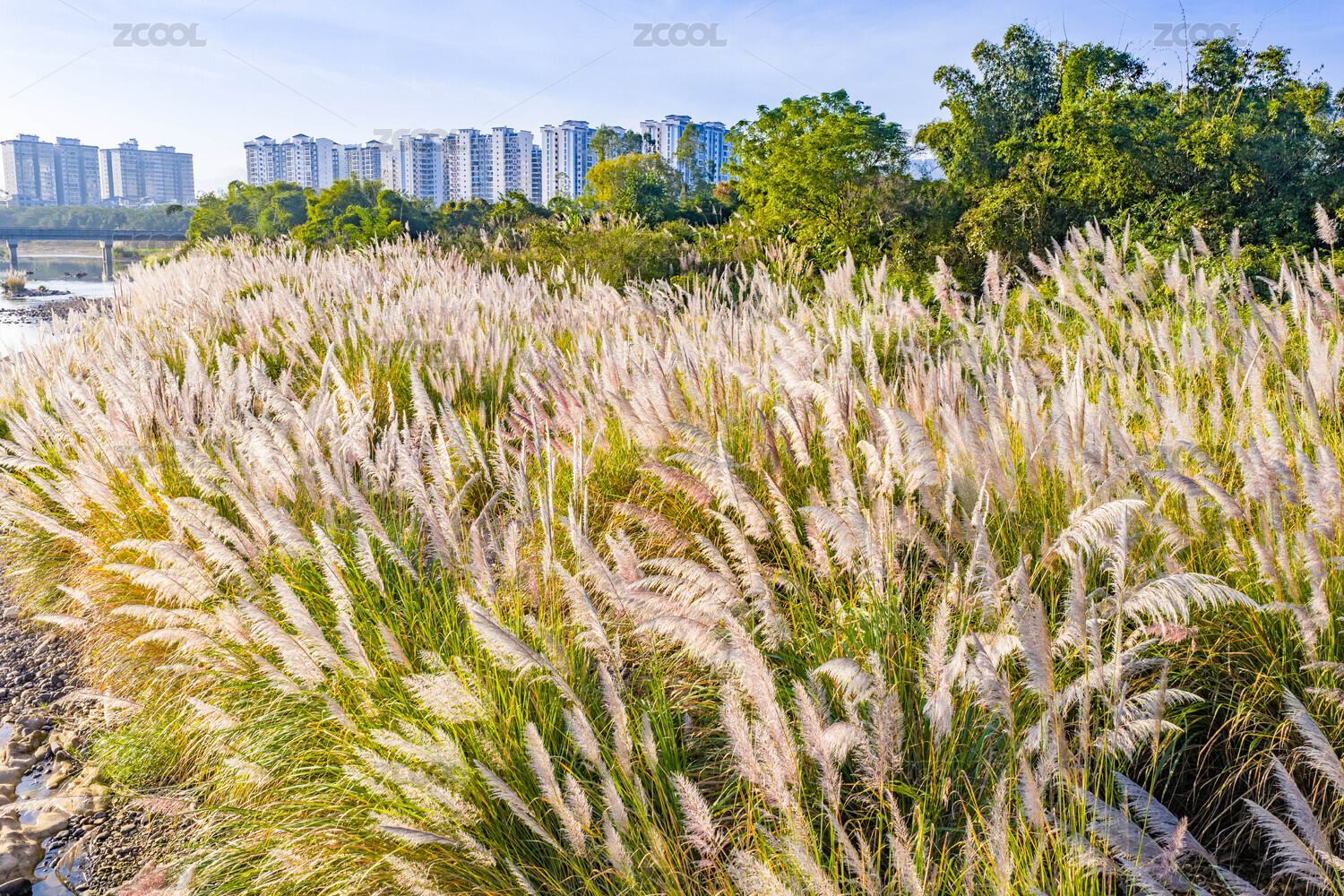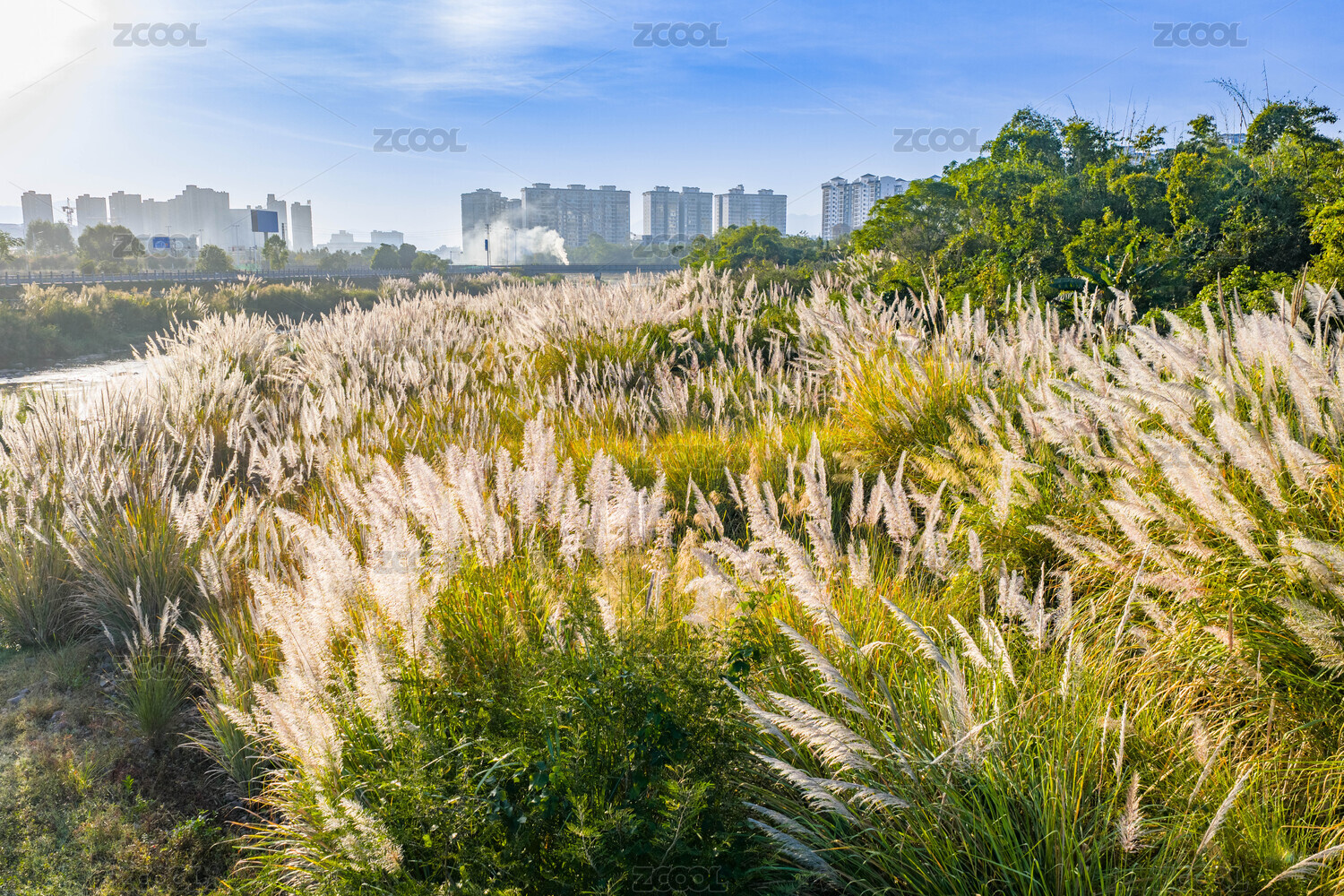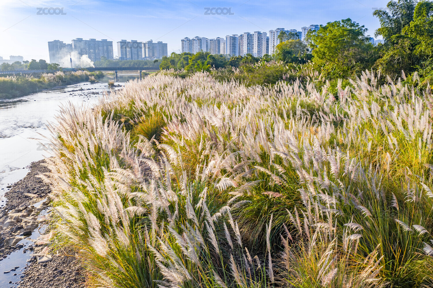 冬季江邊蘆葦花卉陽光映照景觀
