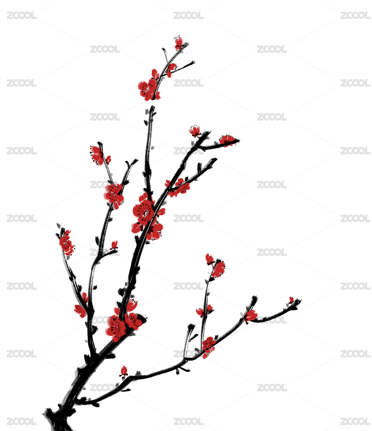 中國風水墨梅花花枝素材