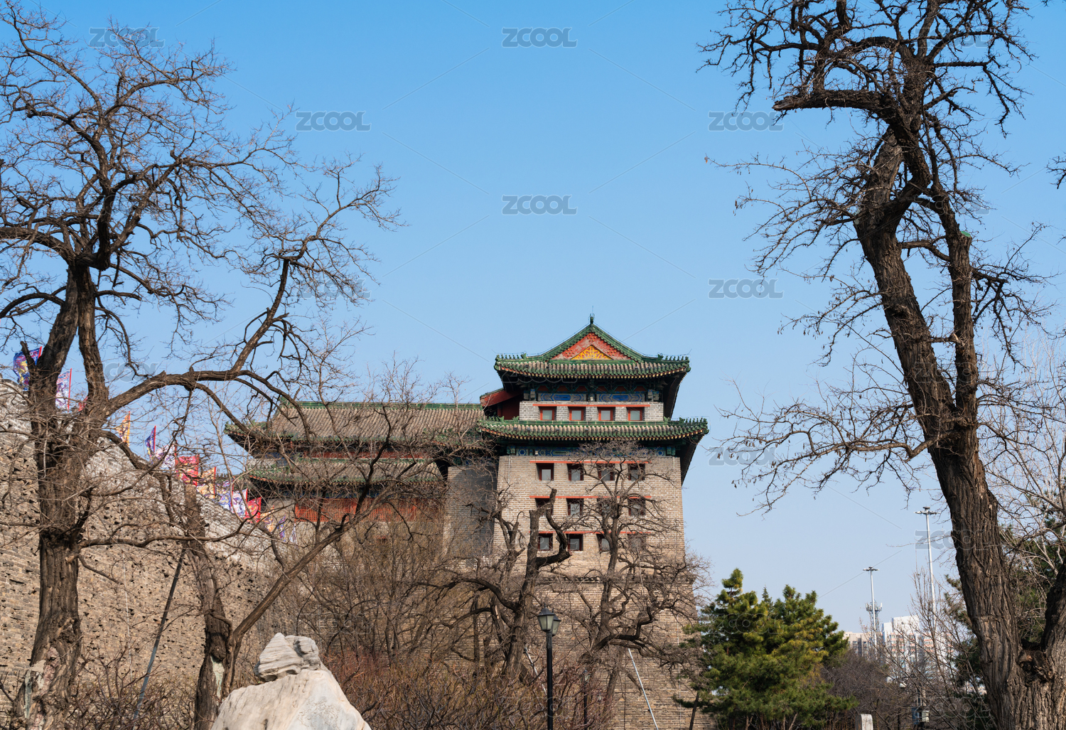 北京明城墻遺址公園東便門角樓古建筑