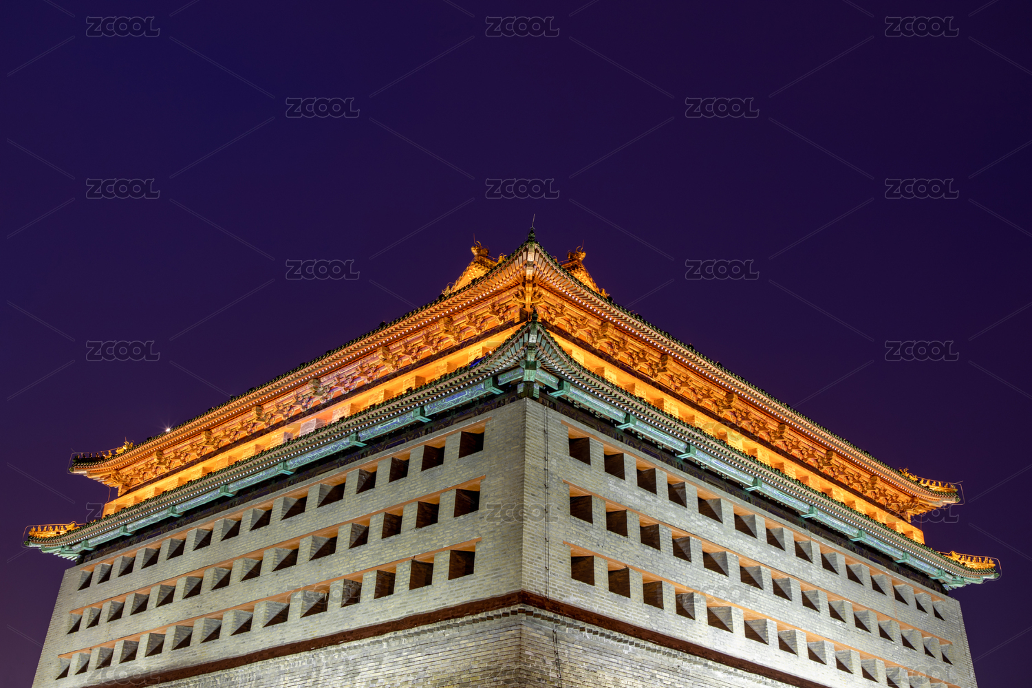 北京明城墻遺址公園的東南角樓夜景