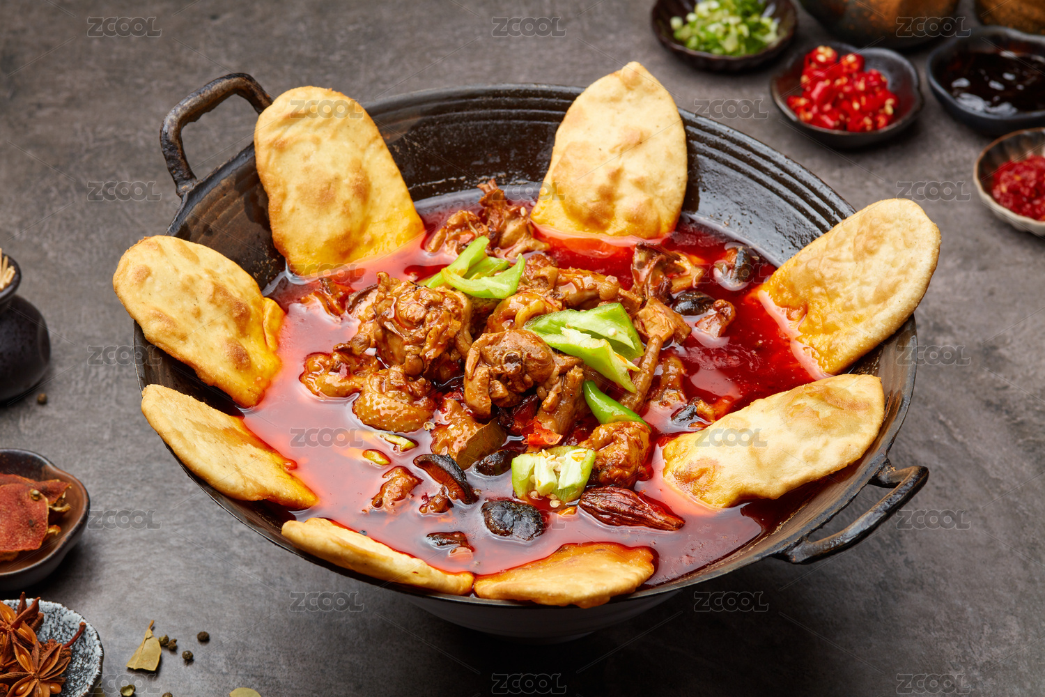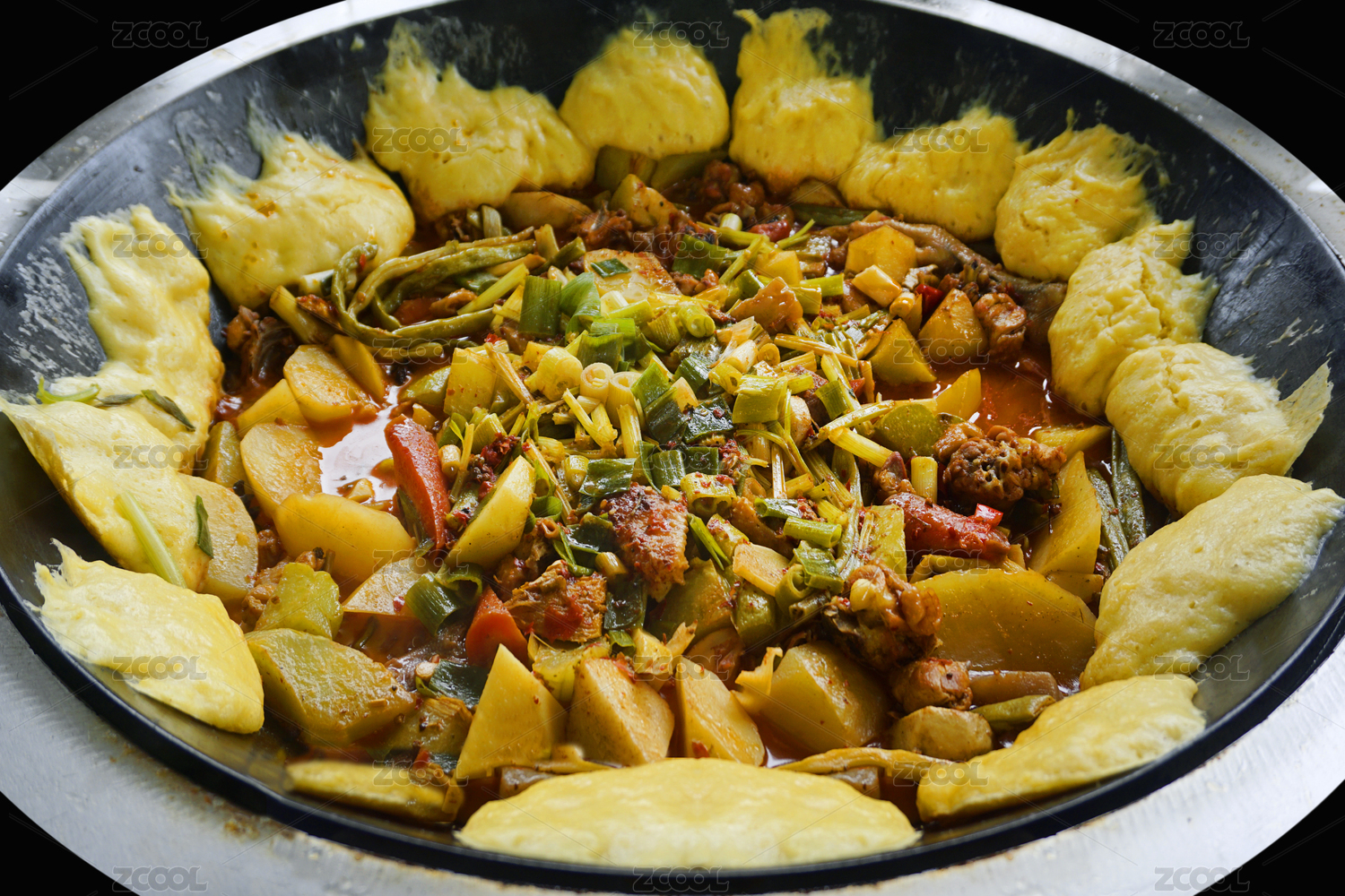 土灶鐵鍋柴火雞和鍋邊饃