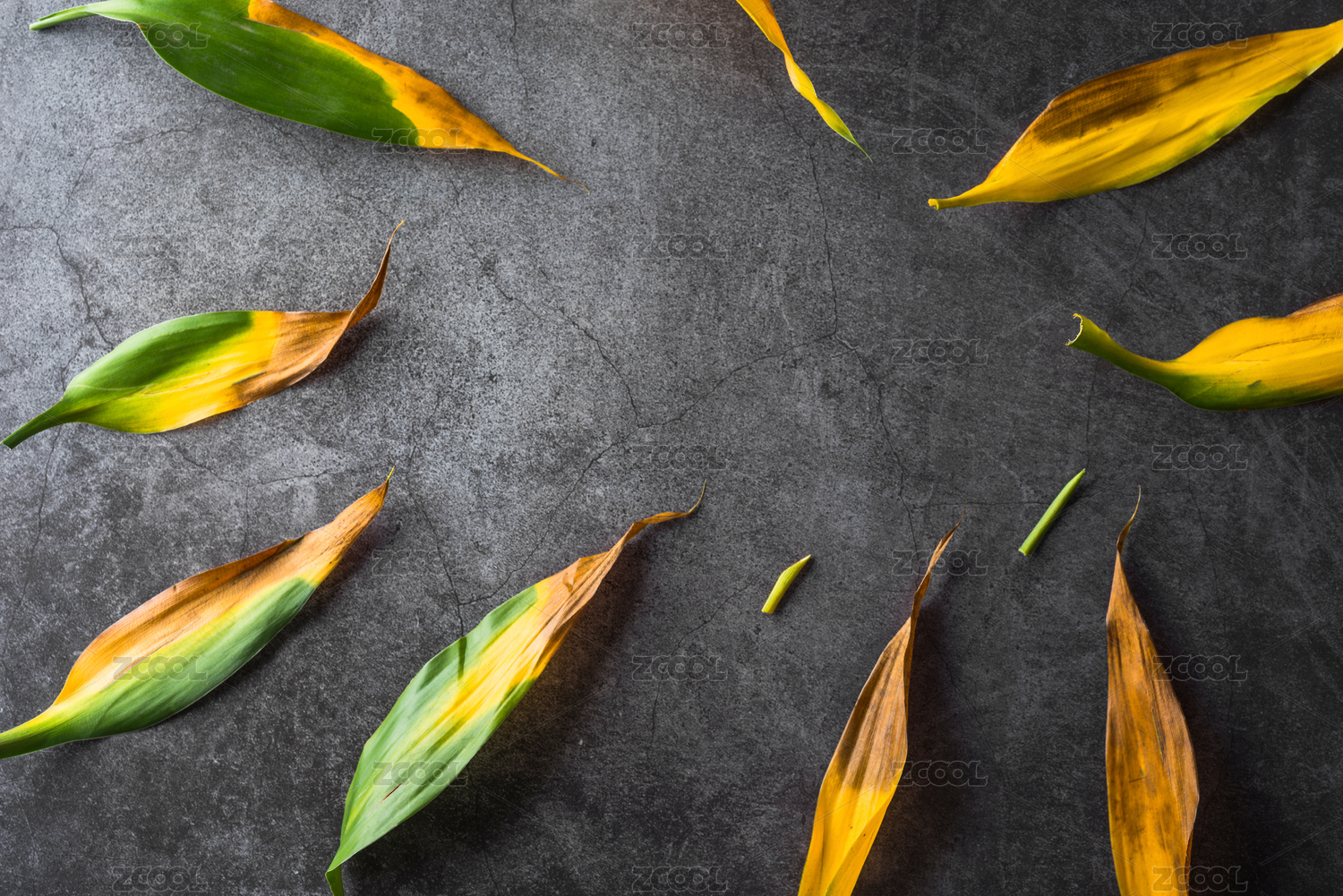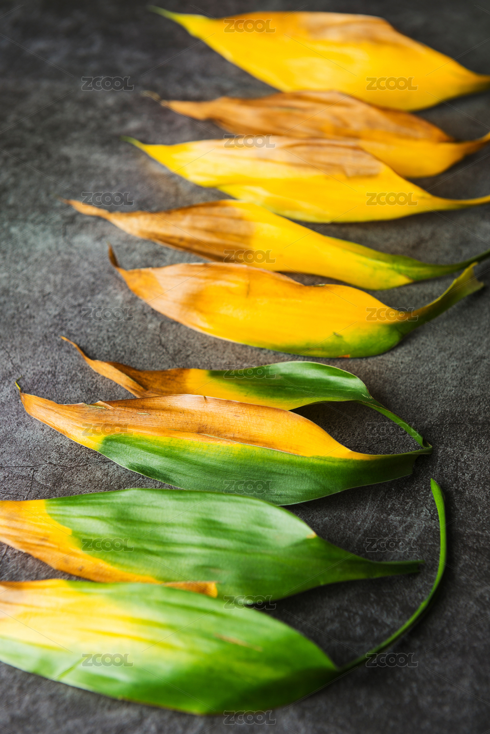 干枯顏色斷層的富貴竹葉子