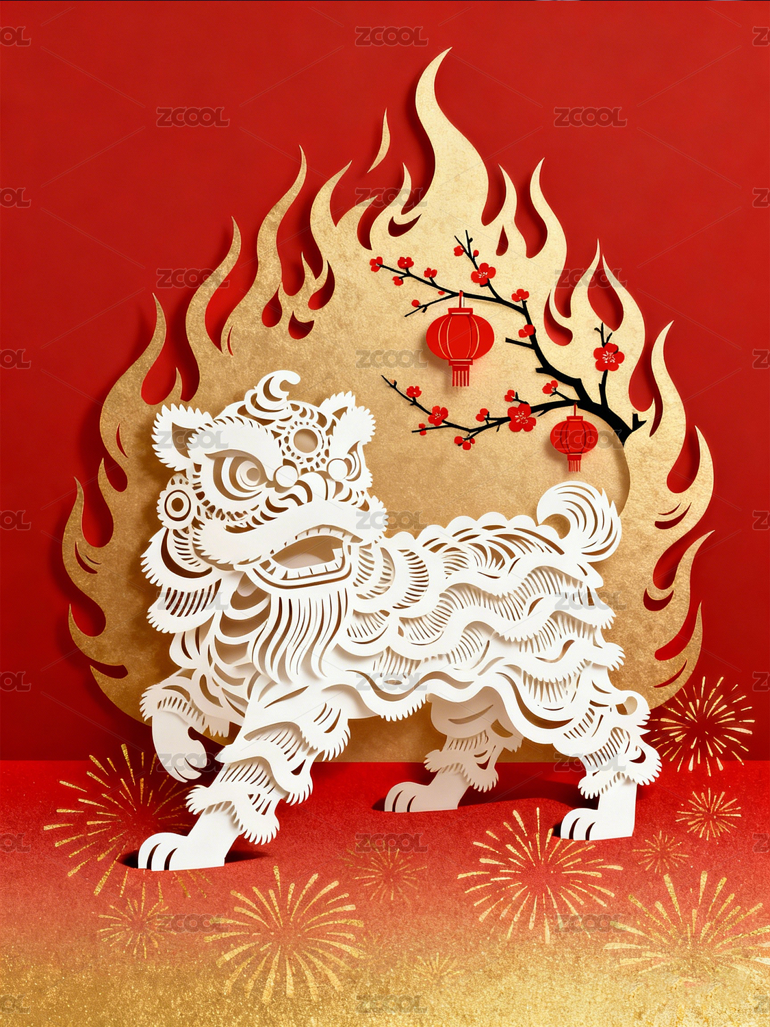 中國(guó)新年春節(jié)剪紙風(fēng)舞獅海報(bào)設(shè)計(jì)背景素材