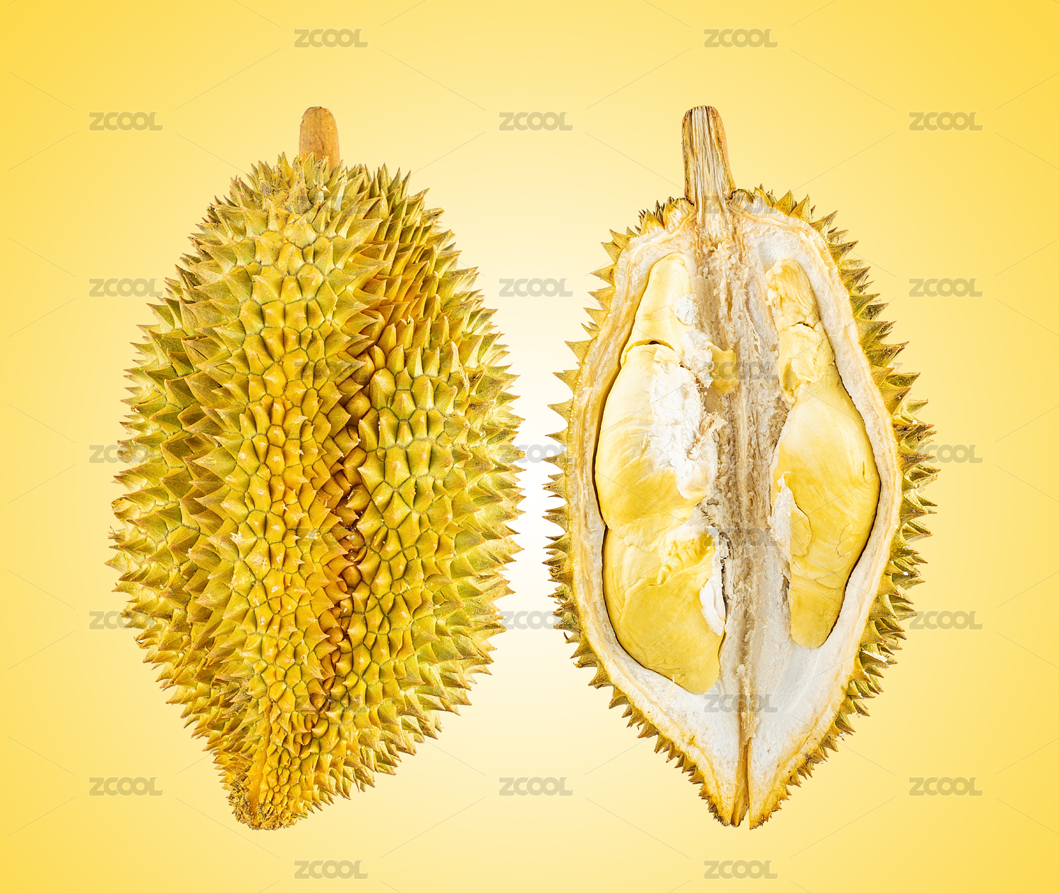 整只榴蓮和剝開(kāi)的榴蓮果肉促銷(xiāo)海報(bào)設(shè)計(jì)背景素材