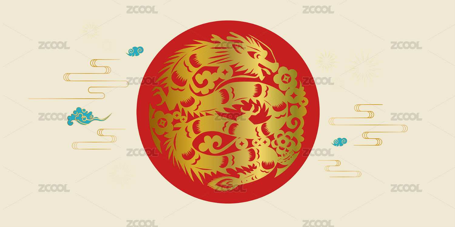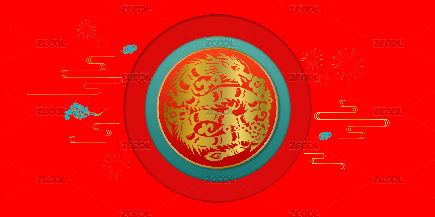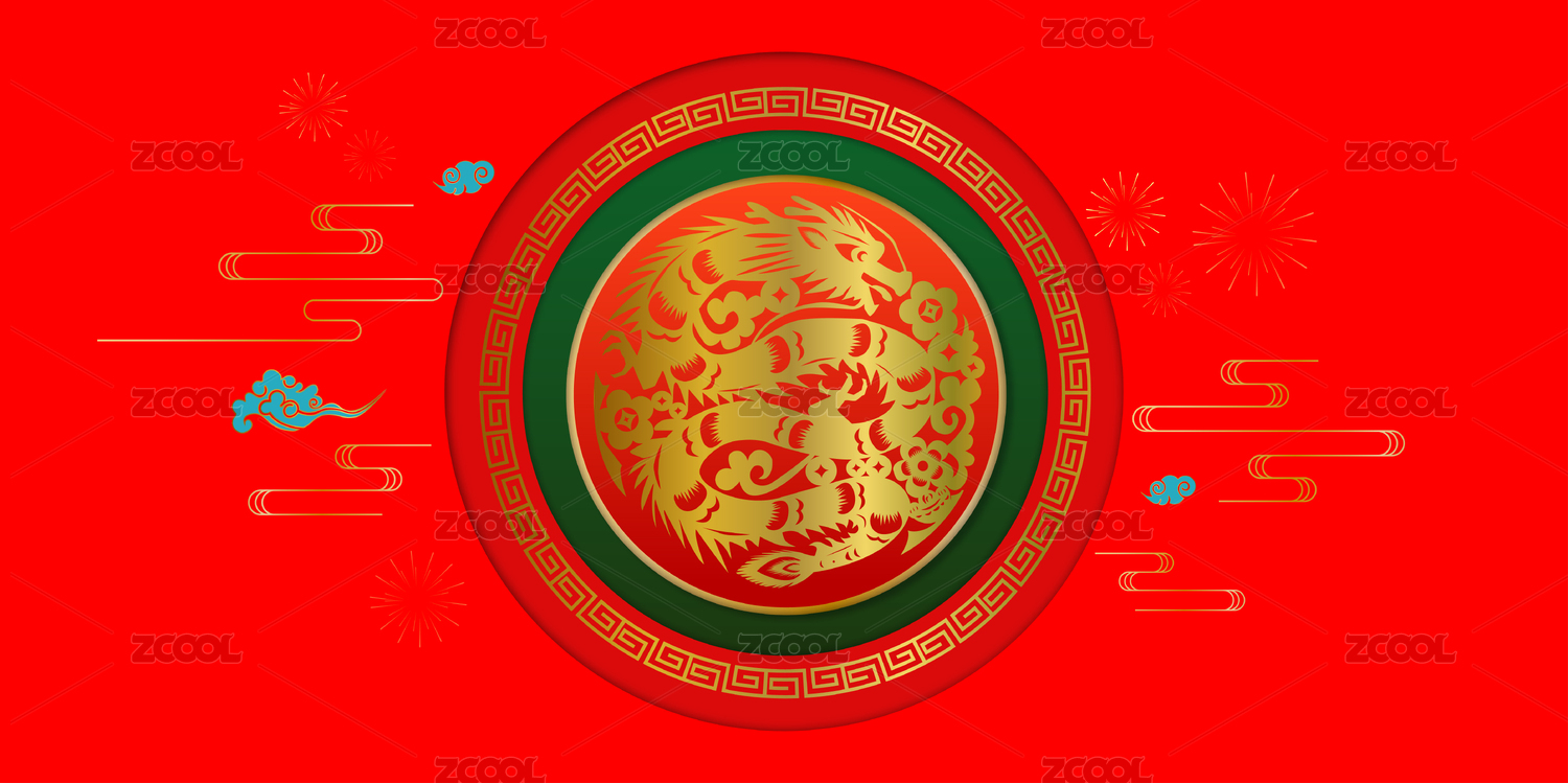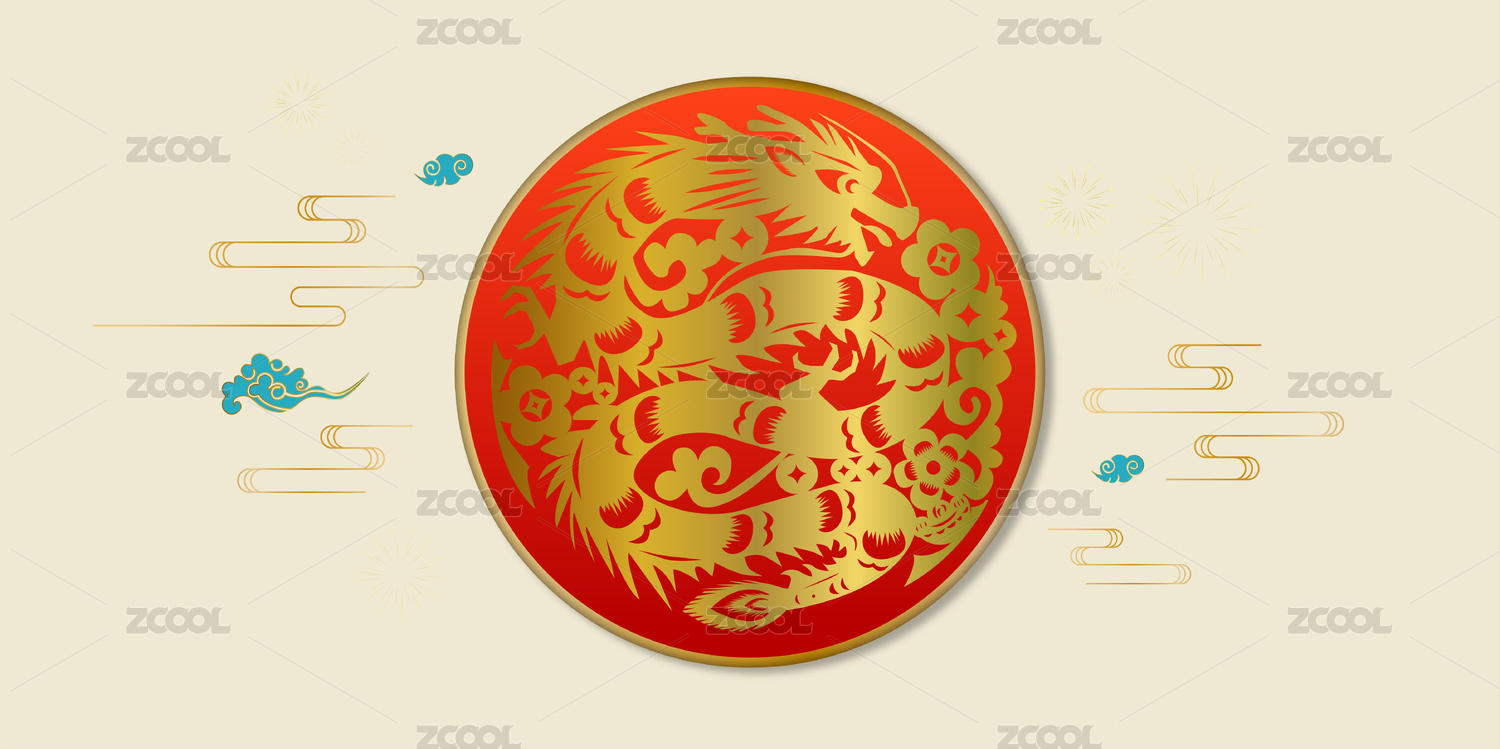 中國(guó)龍年春節(jié)新年剪紙插畫(huà)海報(bào)設(shè)計(jì)背景素材