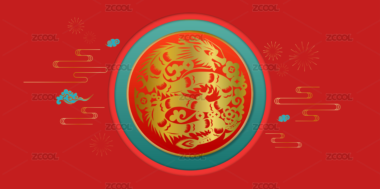 龍年春節(jié)剪紙龍海報(bào)設(shè)計(jì)背景素材