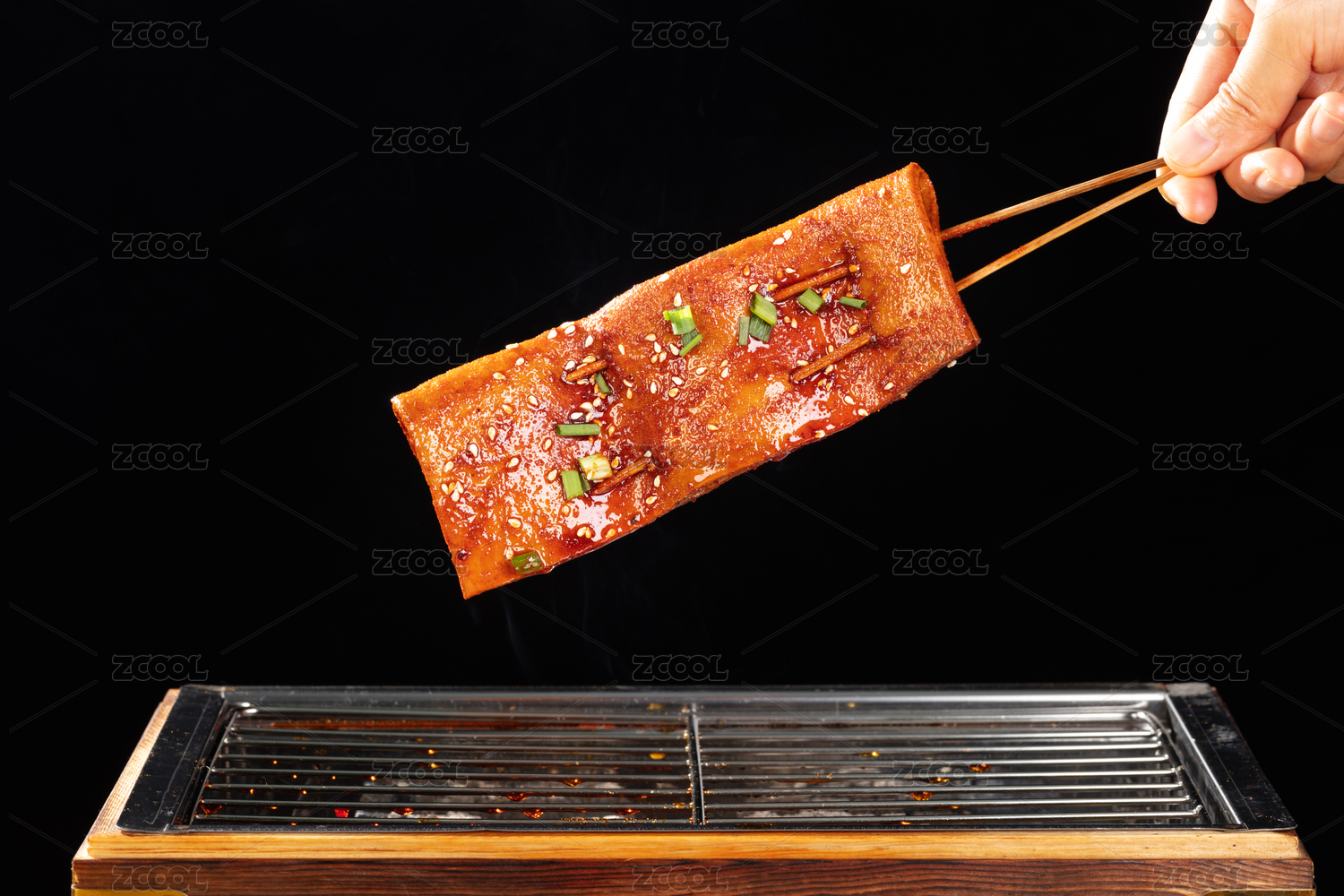 黑色背景背景上黑色瓷盤里的一把烤干子