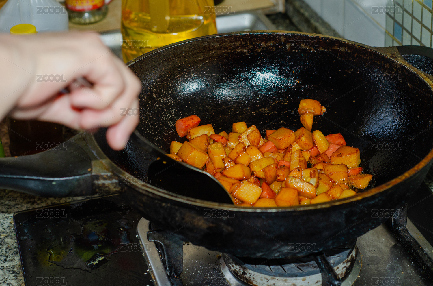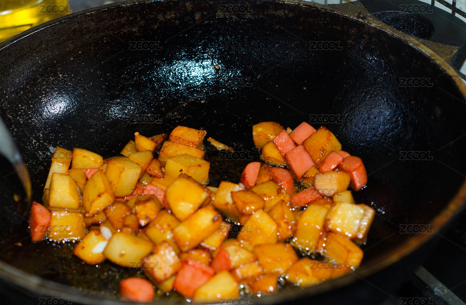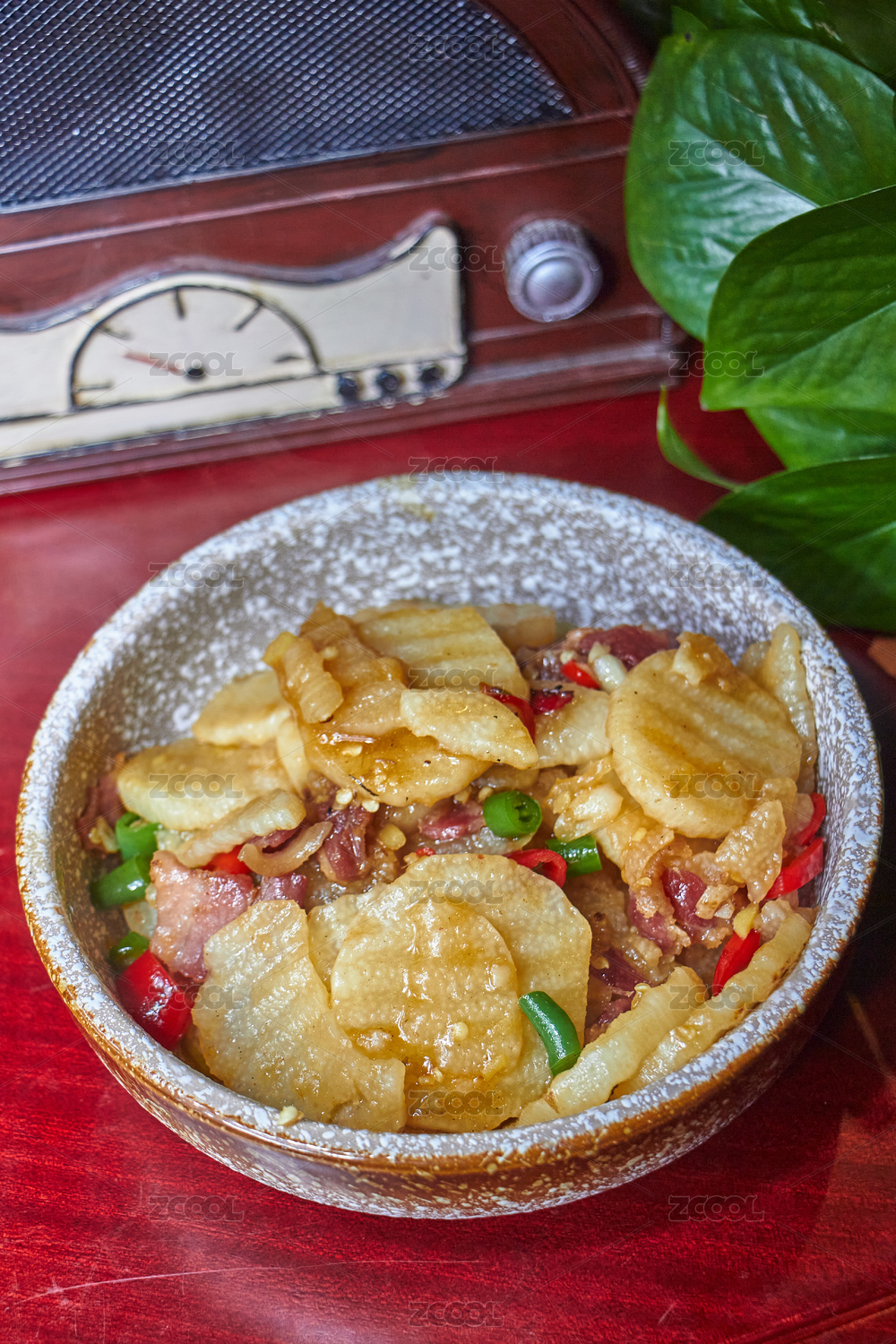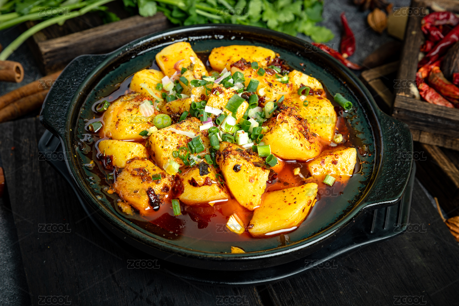 美味家常菜紅燒土豆片盛放在大理石花紋碗中