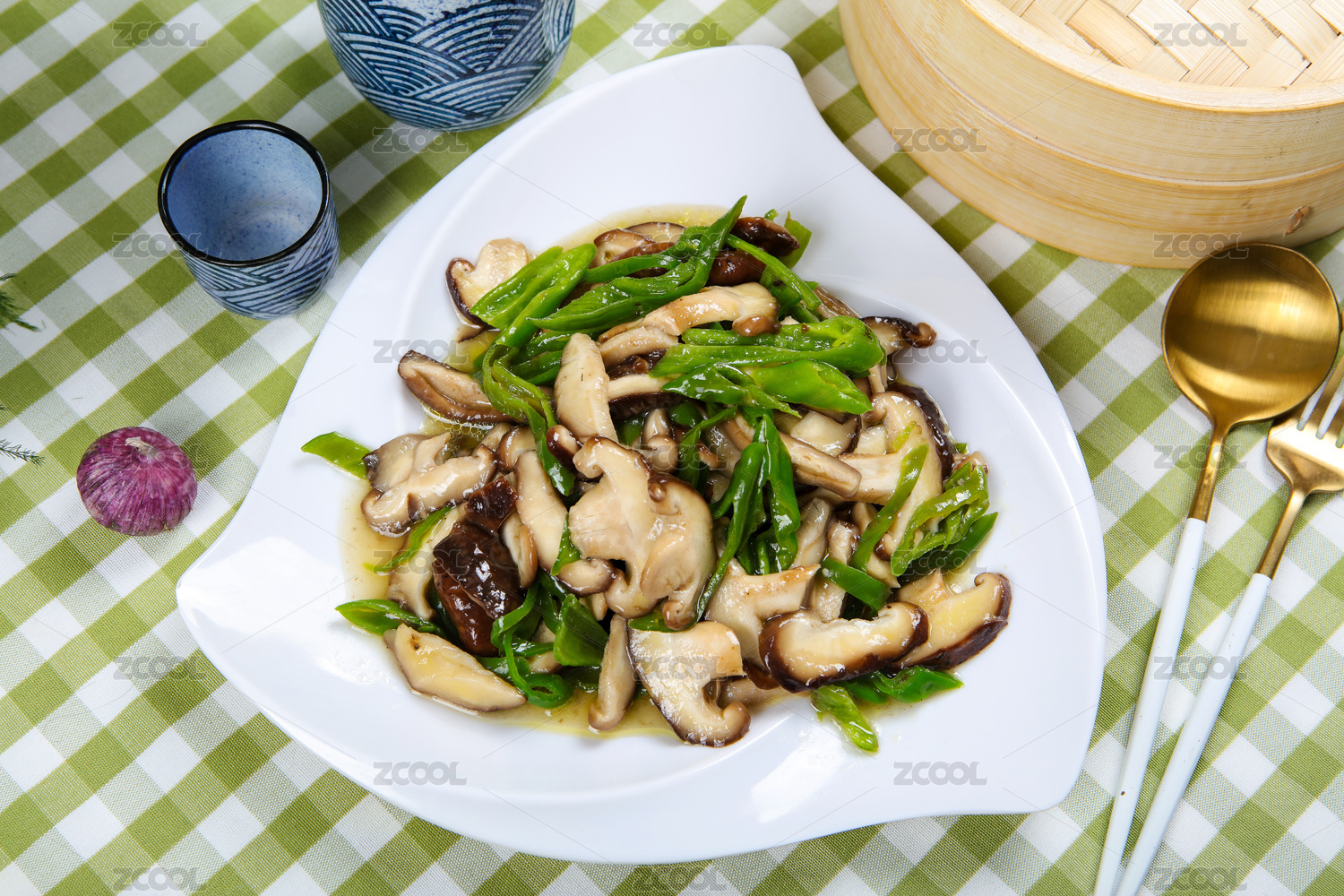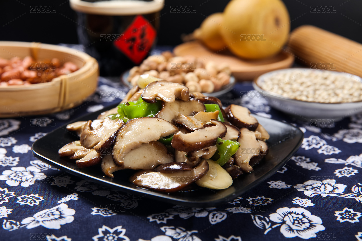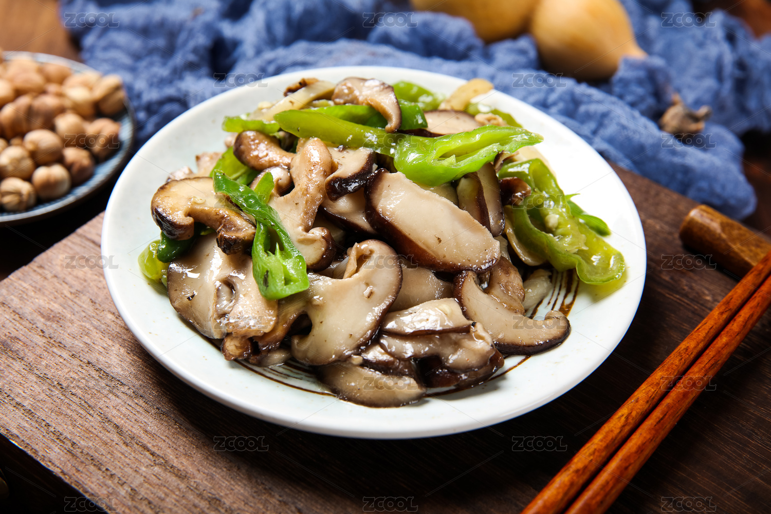 青椒炒香菇美食靜物