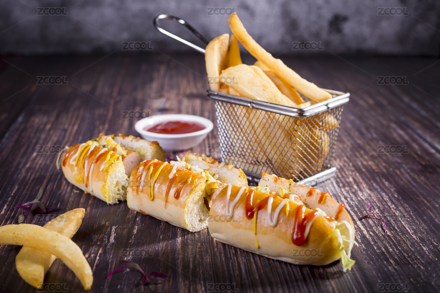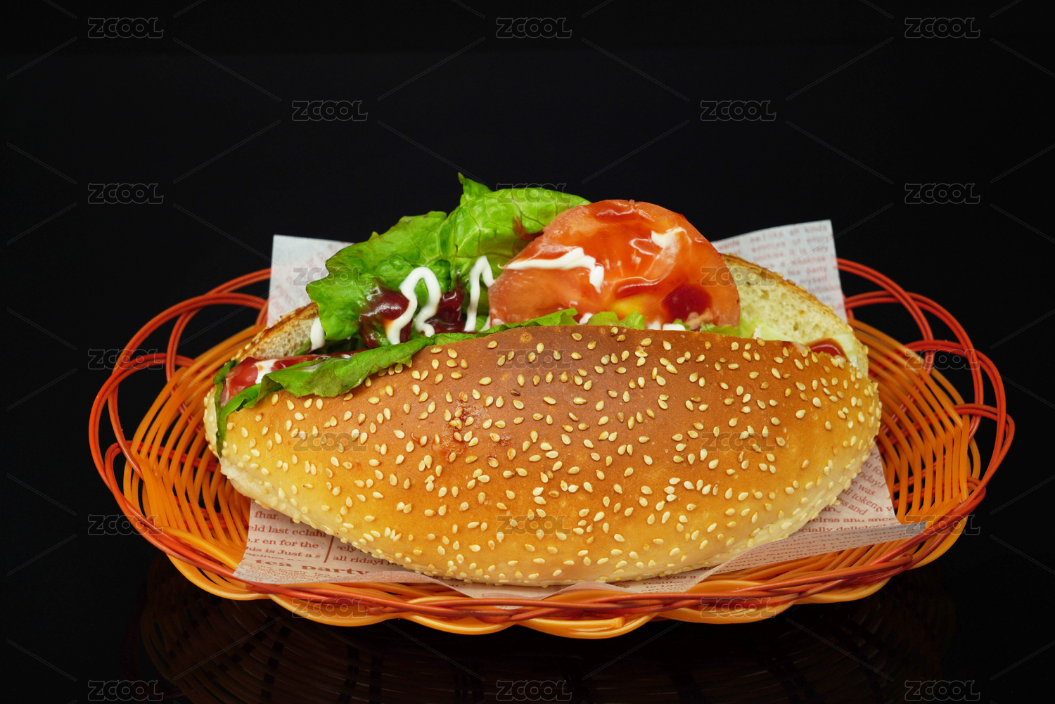 裝在籃子里的餐飲美食火腿面包