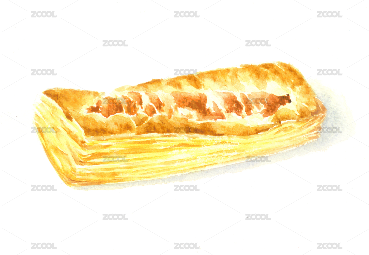 火腿面包水彩手繪美食