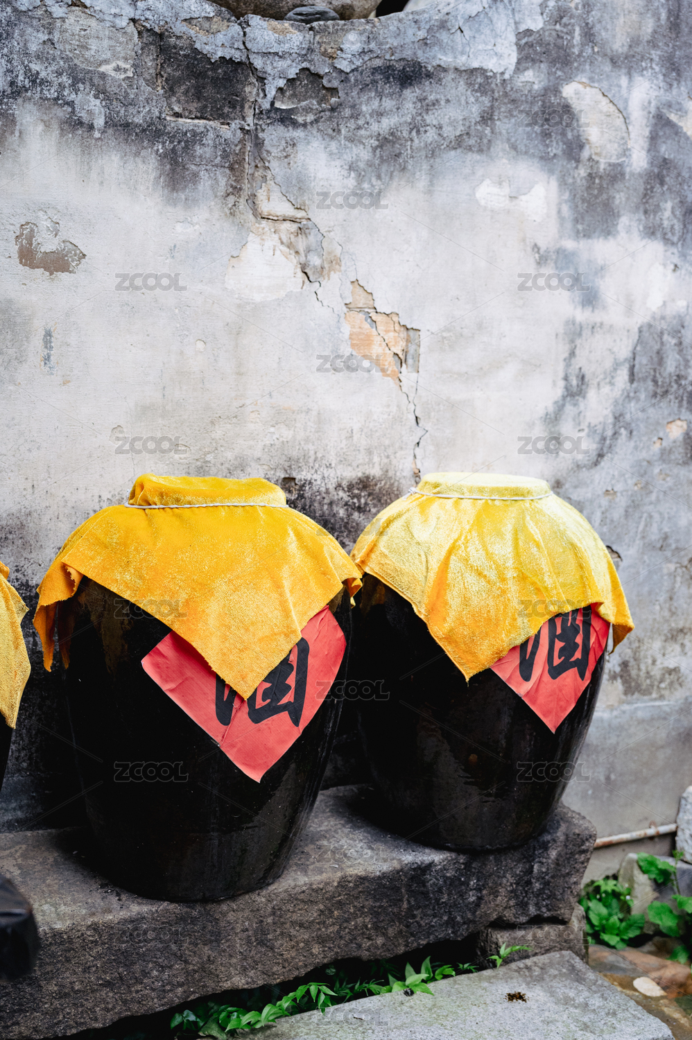 古鎮(zhèn)街邊的黃酒罐