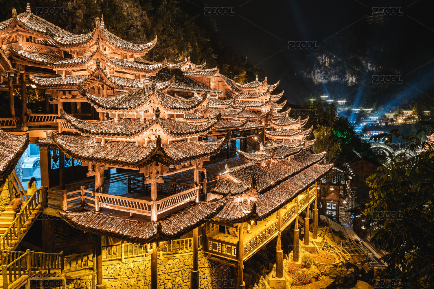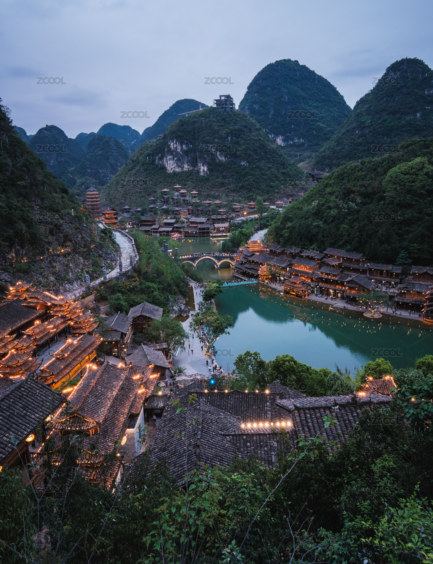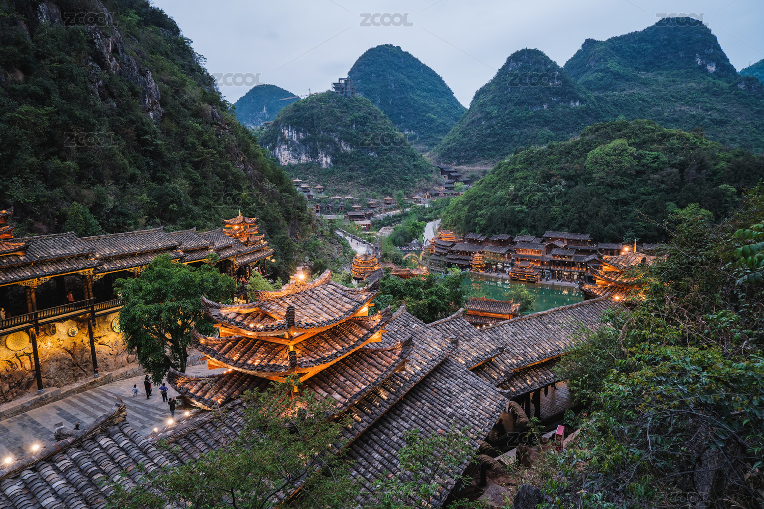 貴州黔西南興義峰林布依古鎮(zhèn)建筑夜景風(fēng)光