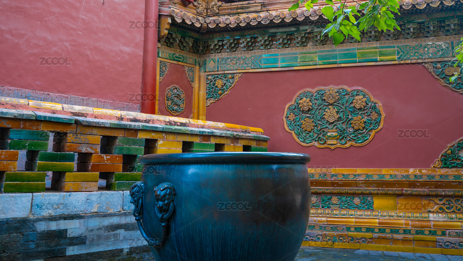 中國北京故宮院中的帶獅子頭像的銅制大缸