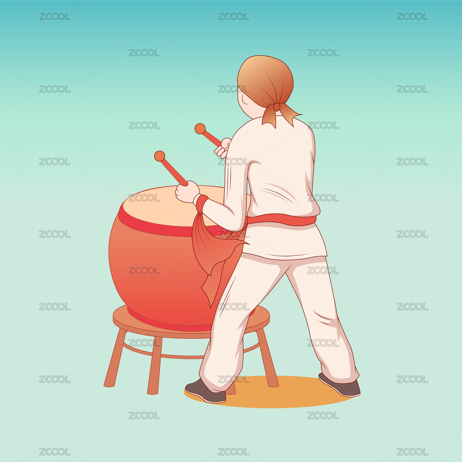 打鼓人物插畫