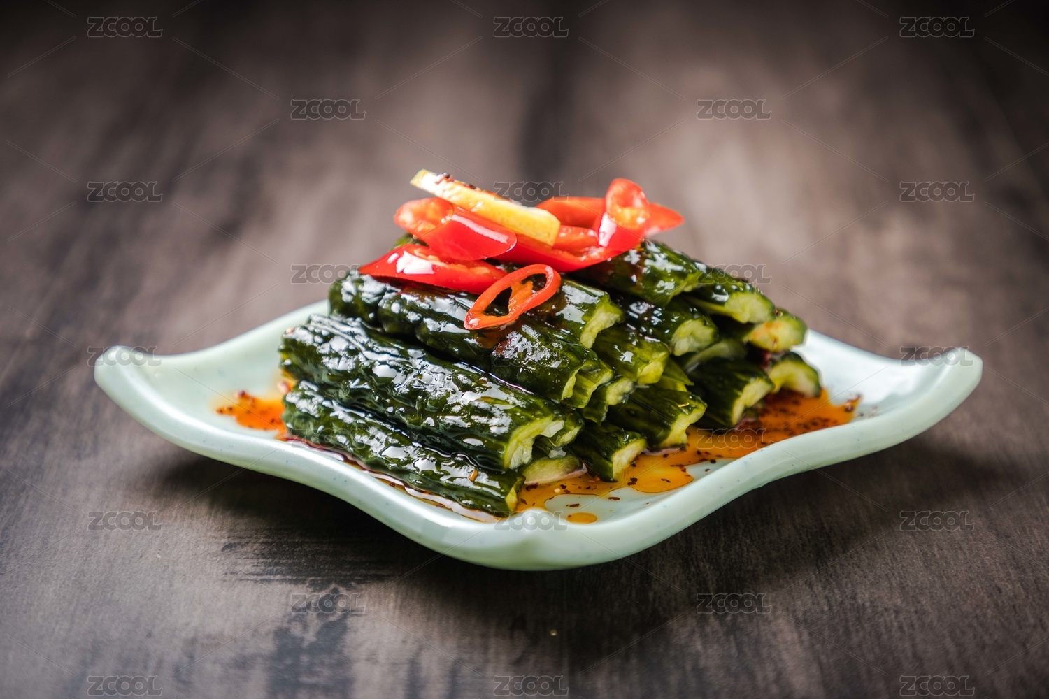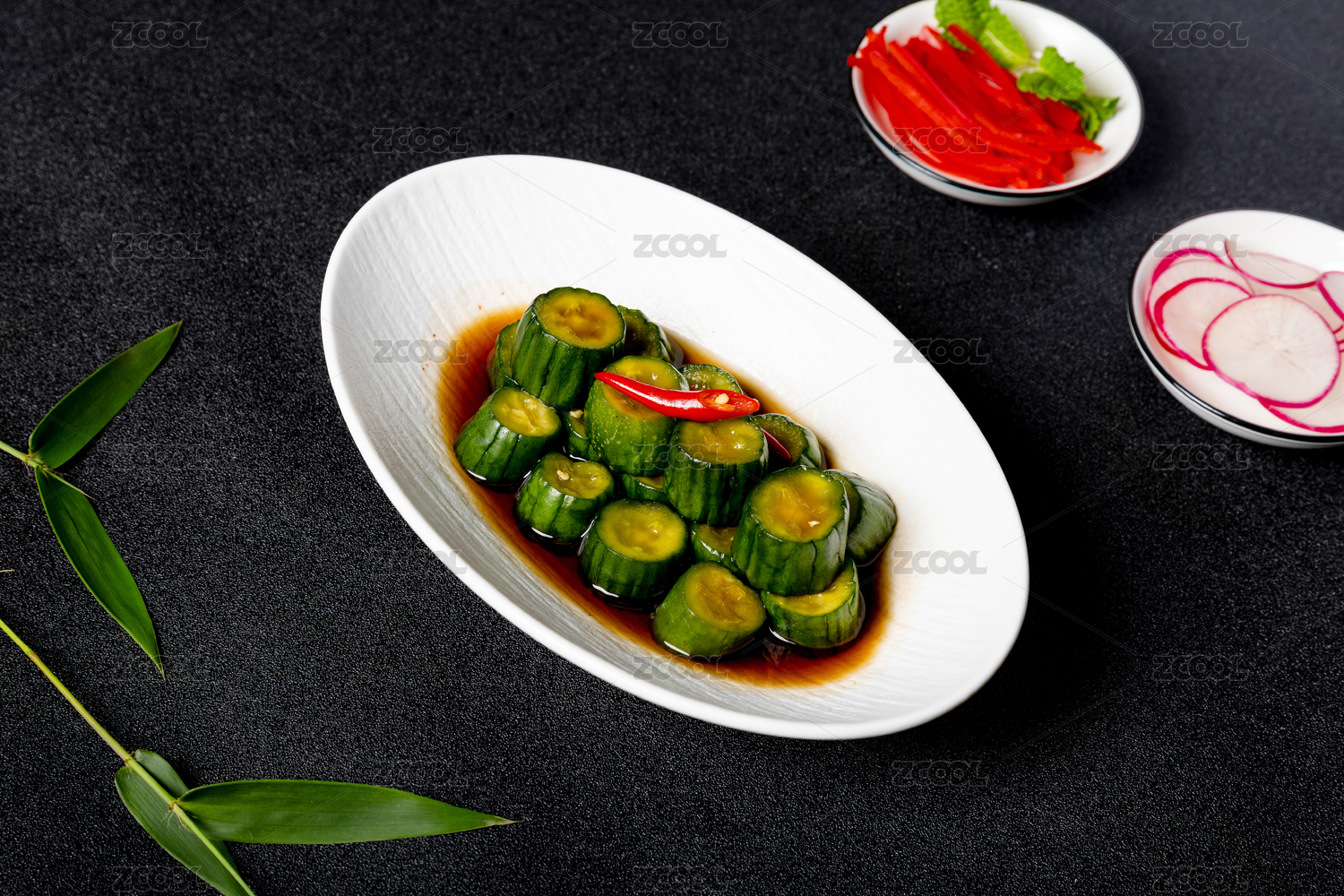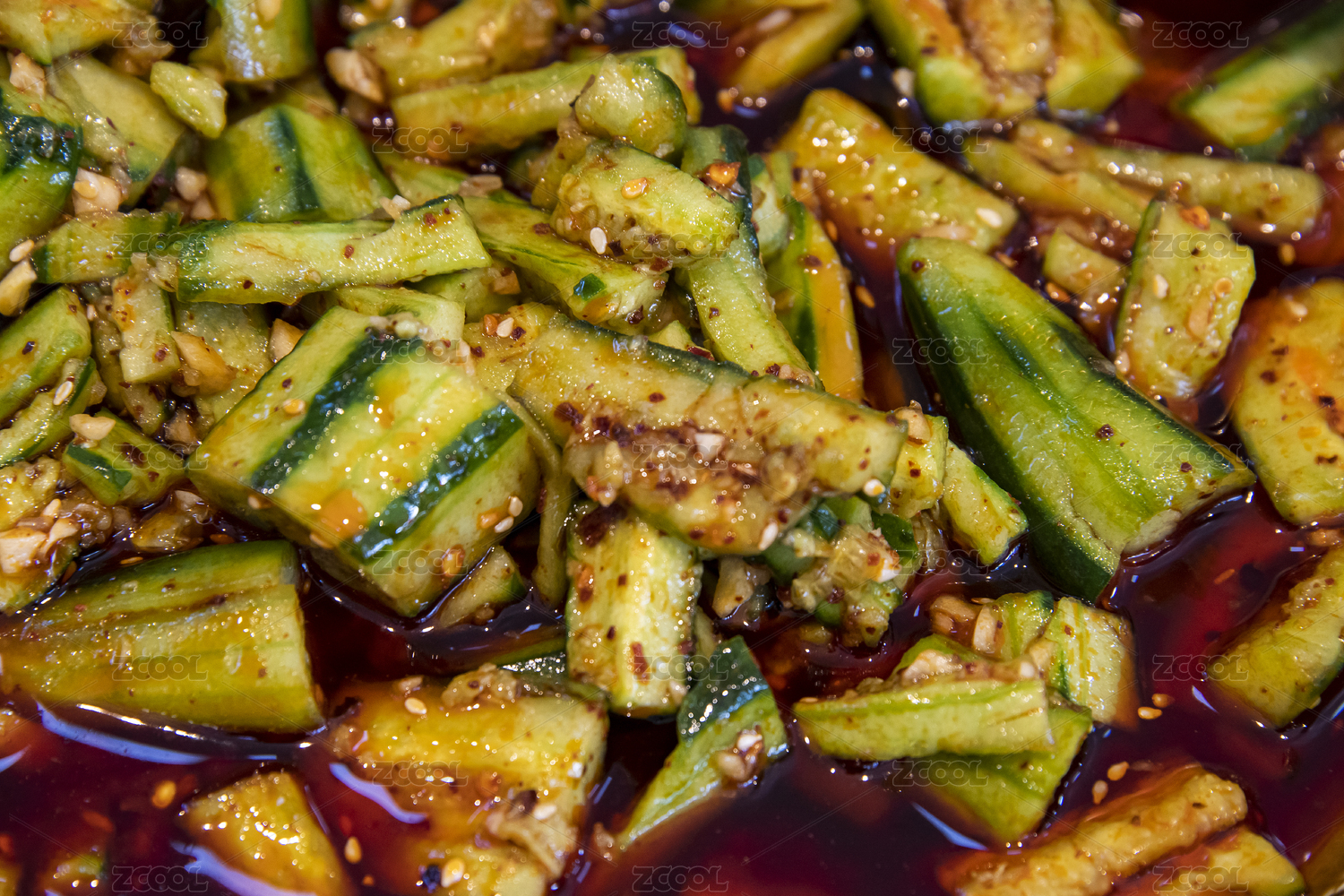 黑色背景紅油涼拌黃瓜條