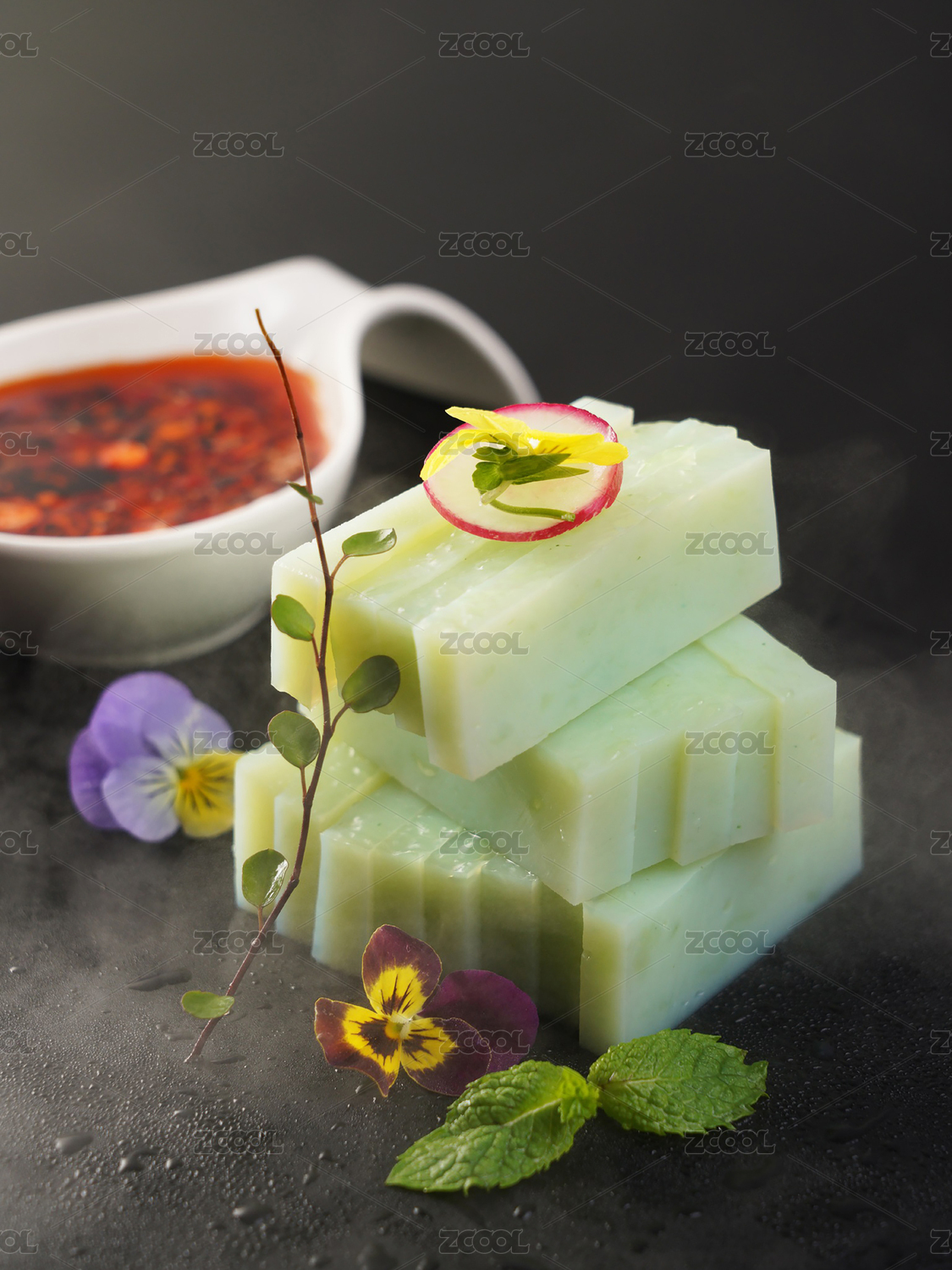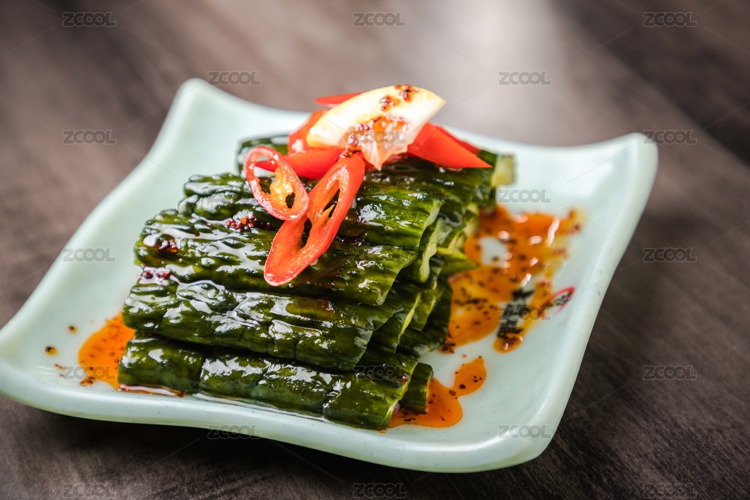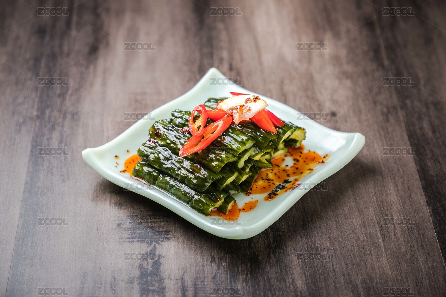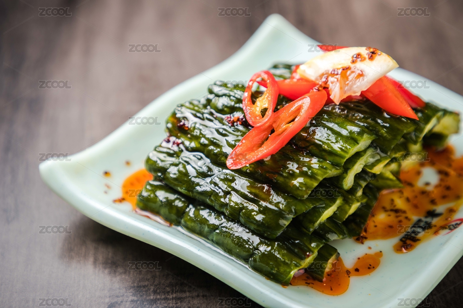 黑色背景紅油涼拌黃瓜條