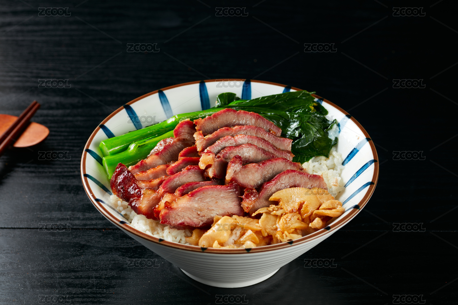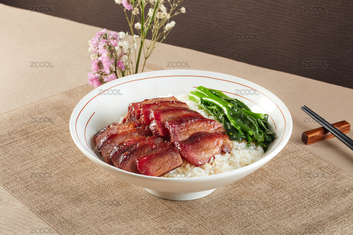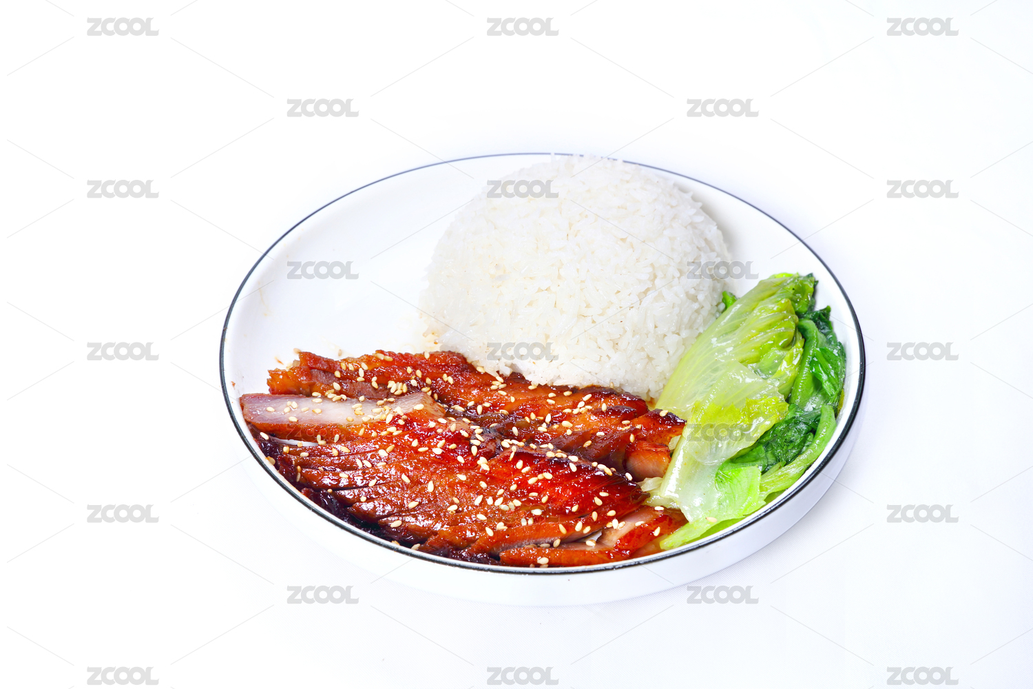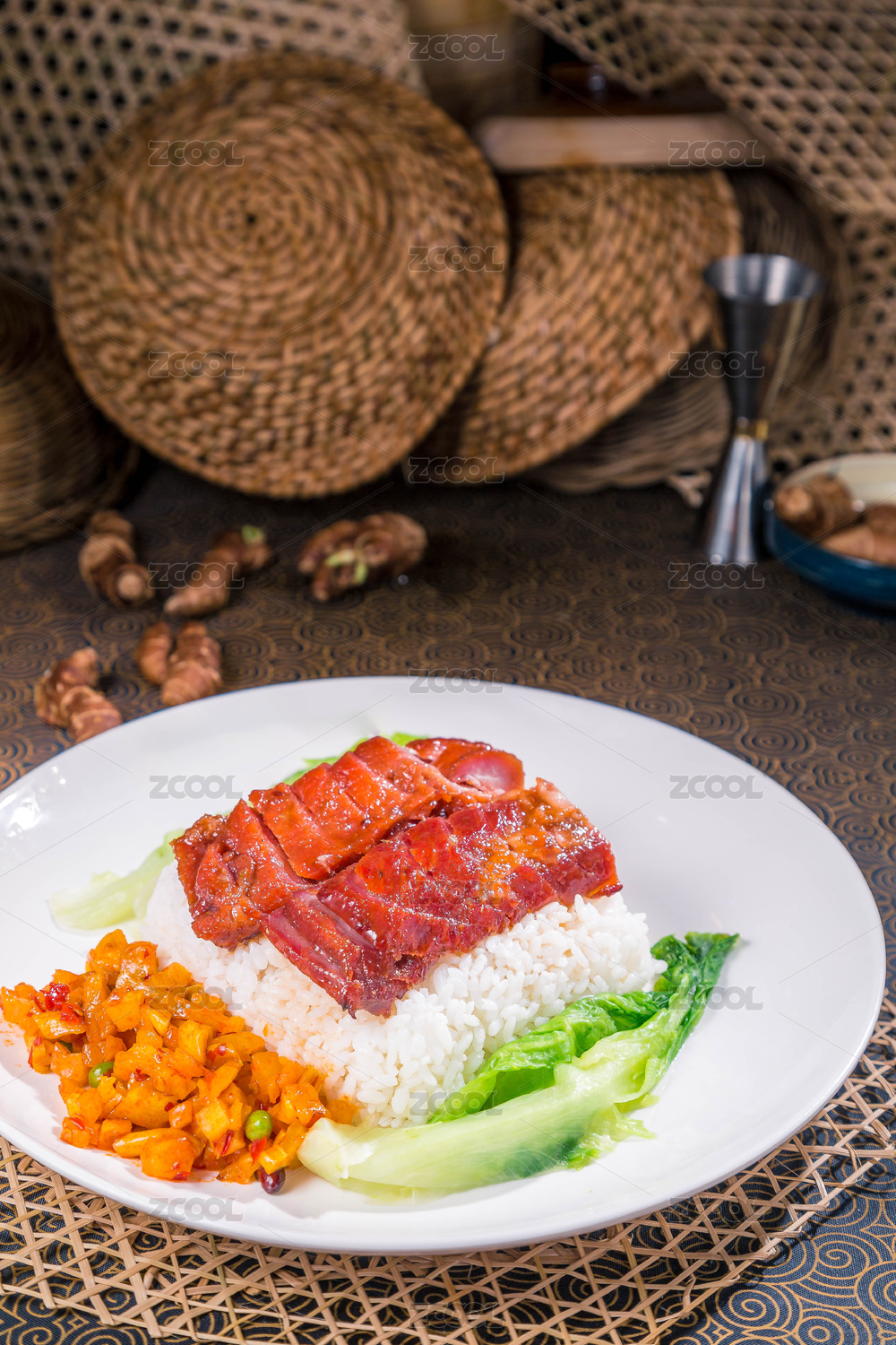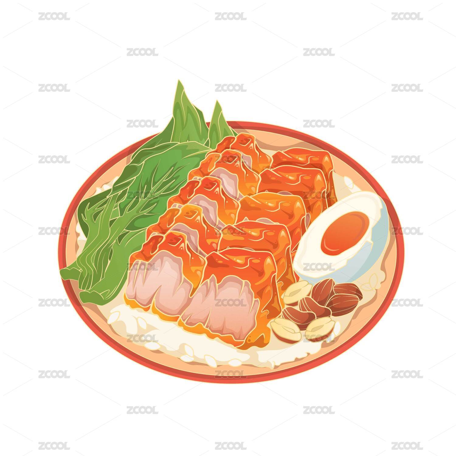 中國風廣東燒臘蜜汁叉燒飯美食餐飲矢量插畫