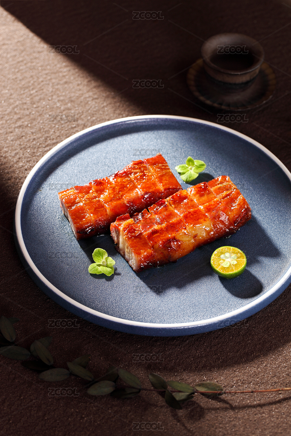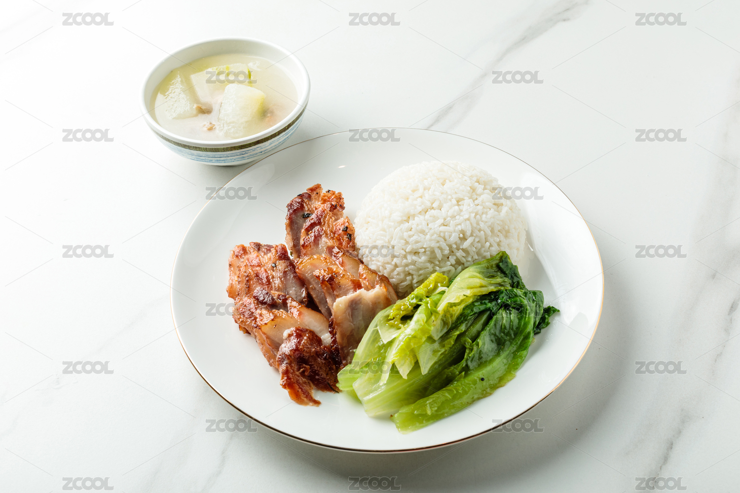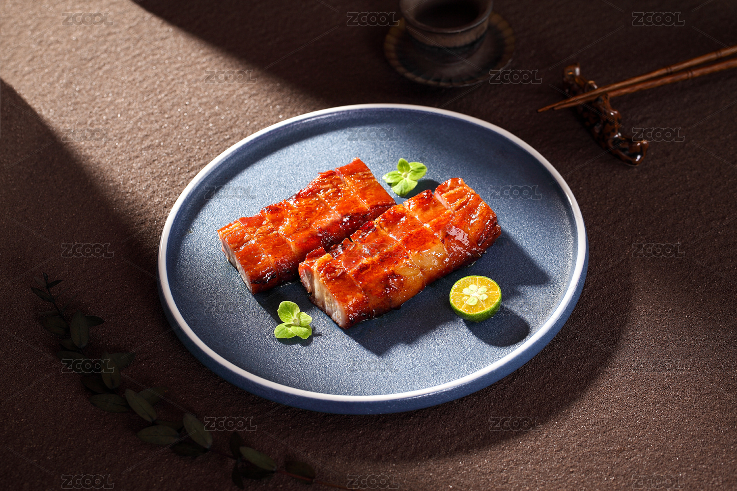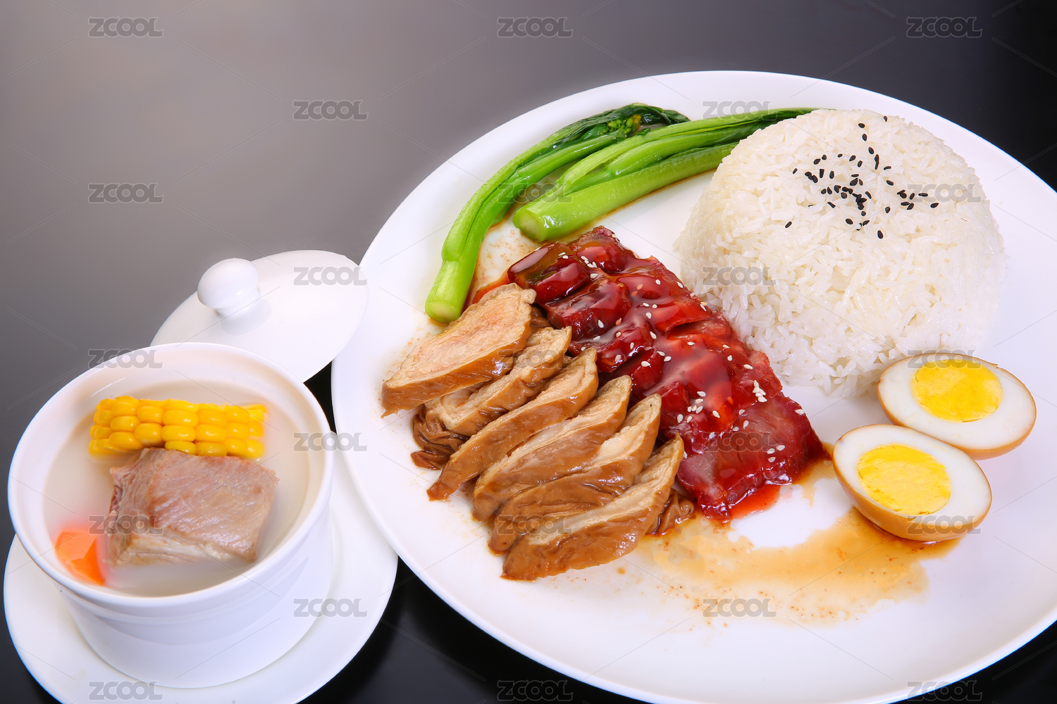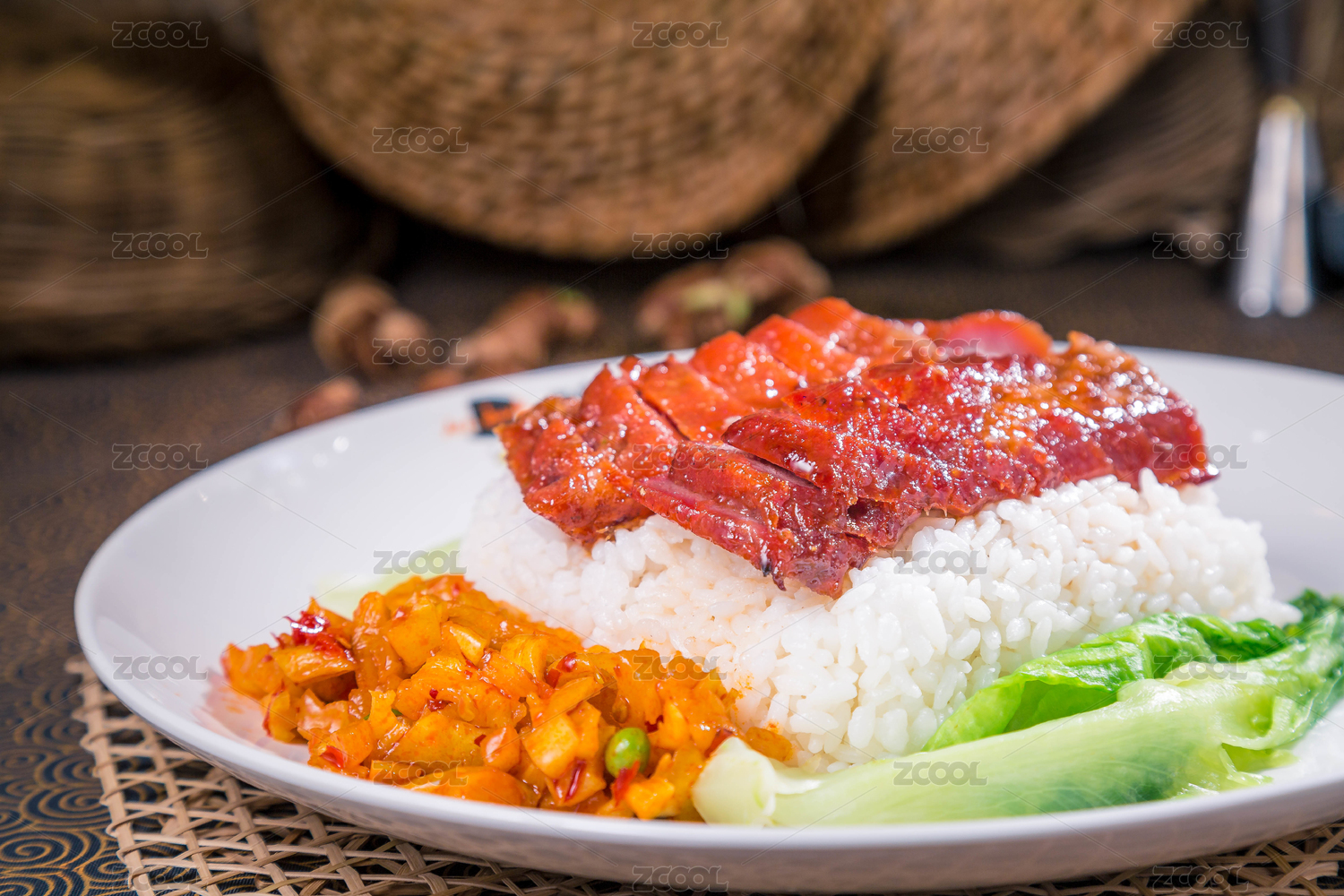 中國風廣東燒臘蜜汁叉燒飯美食餐飲矢量插畫