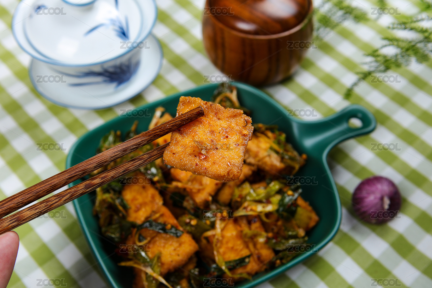 香辣美味下酒菜蒜苗爆炒臭豆腐