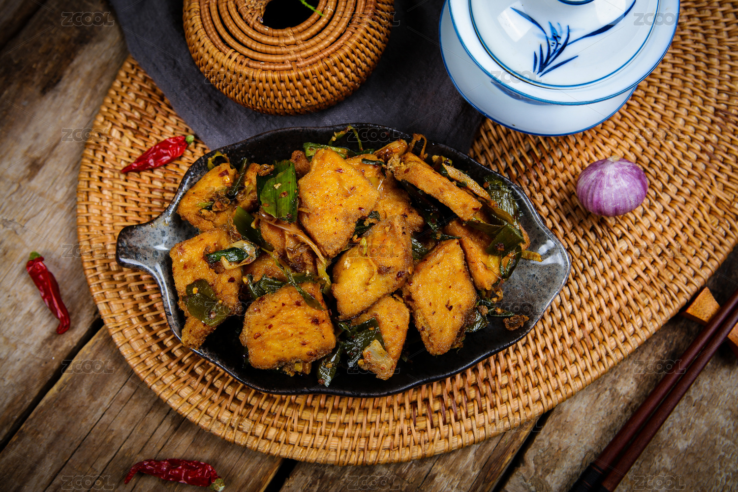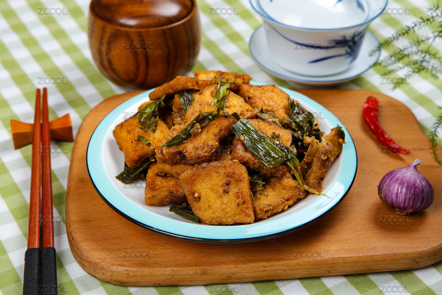 中餐美食蒜苗炒臭豆腐