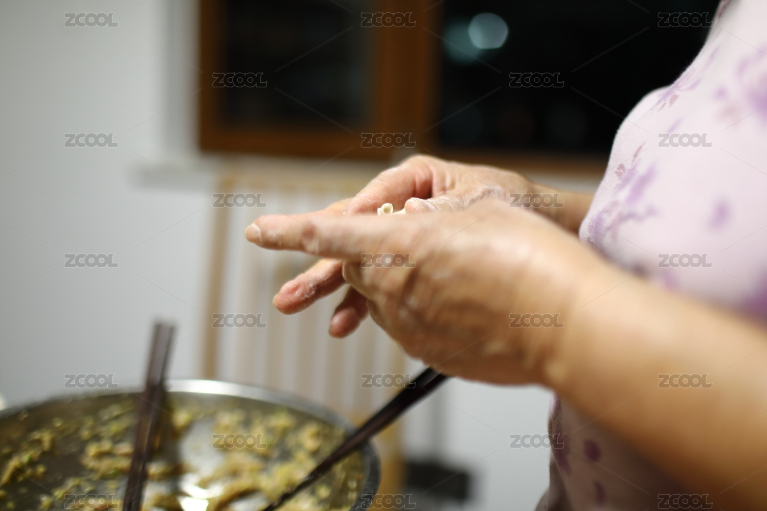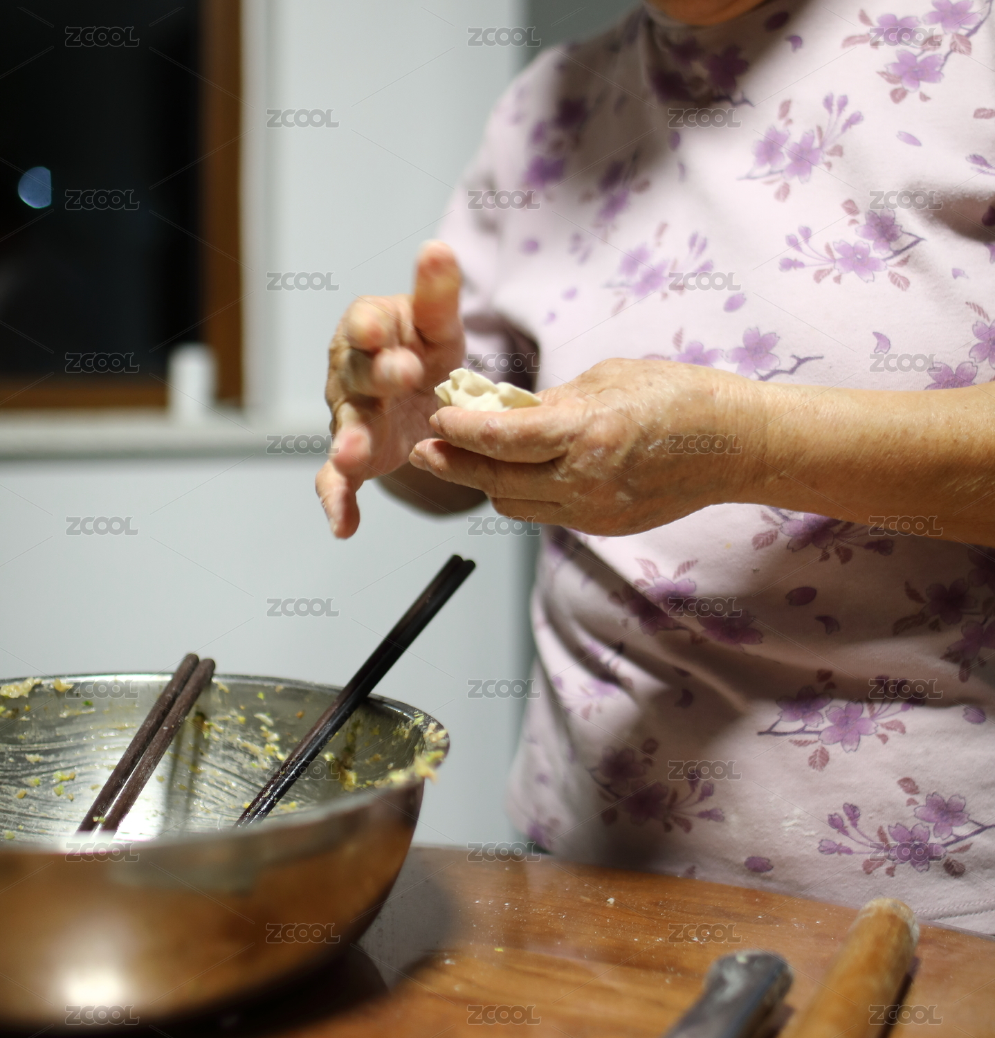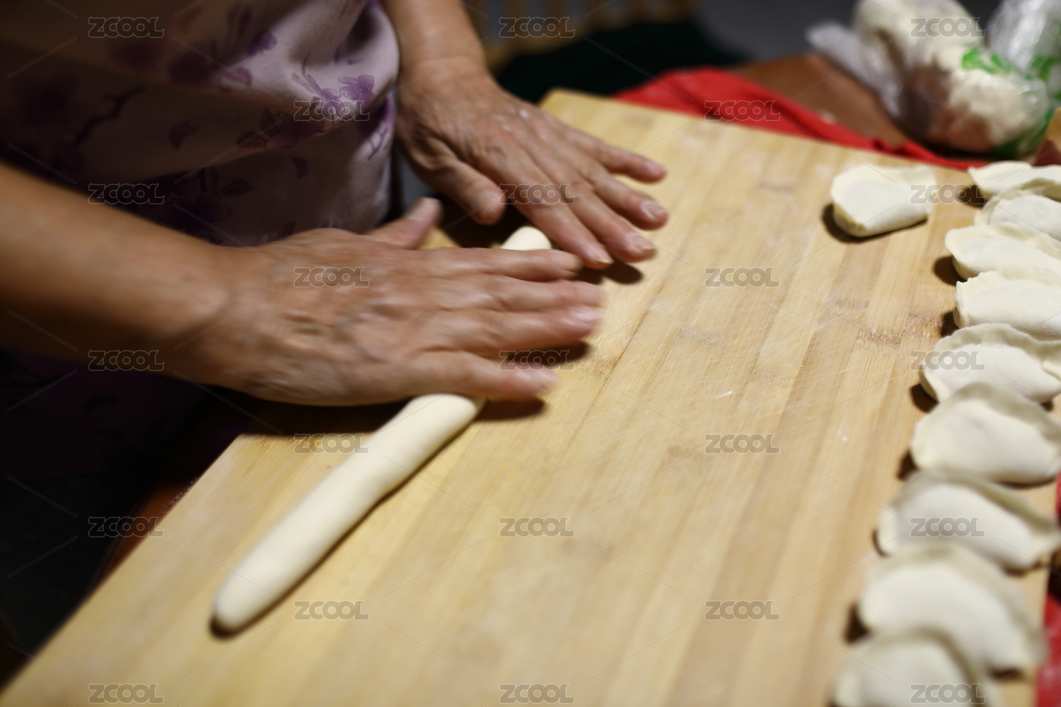 中國(guó)節(jié)日前搟餃子皮準(zhǔn)備包餃子