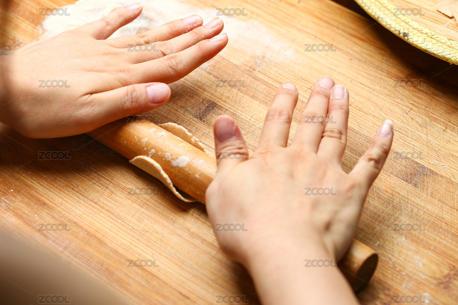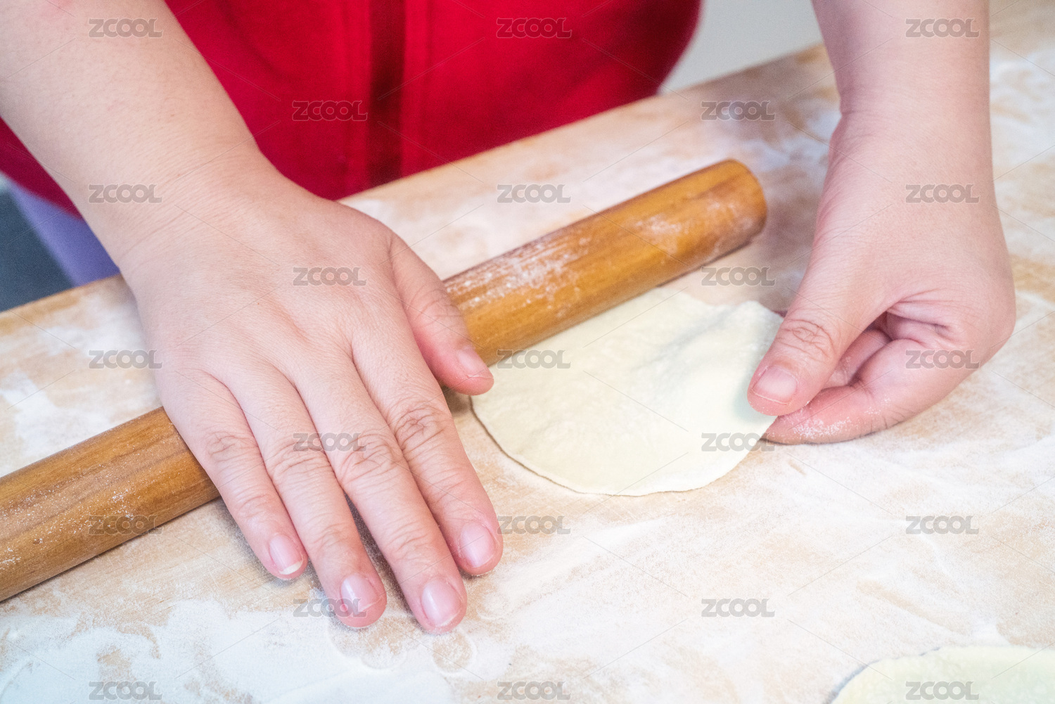 女性手手工搟皮過程