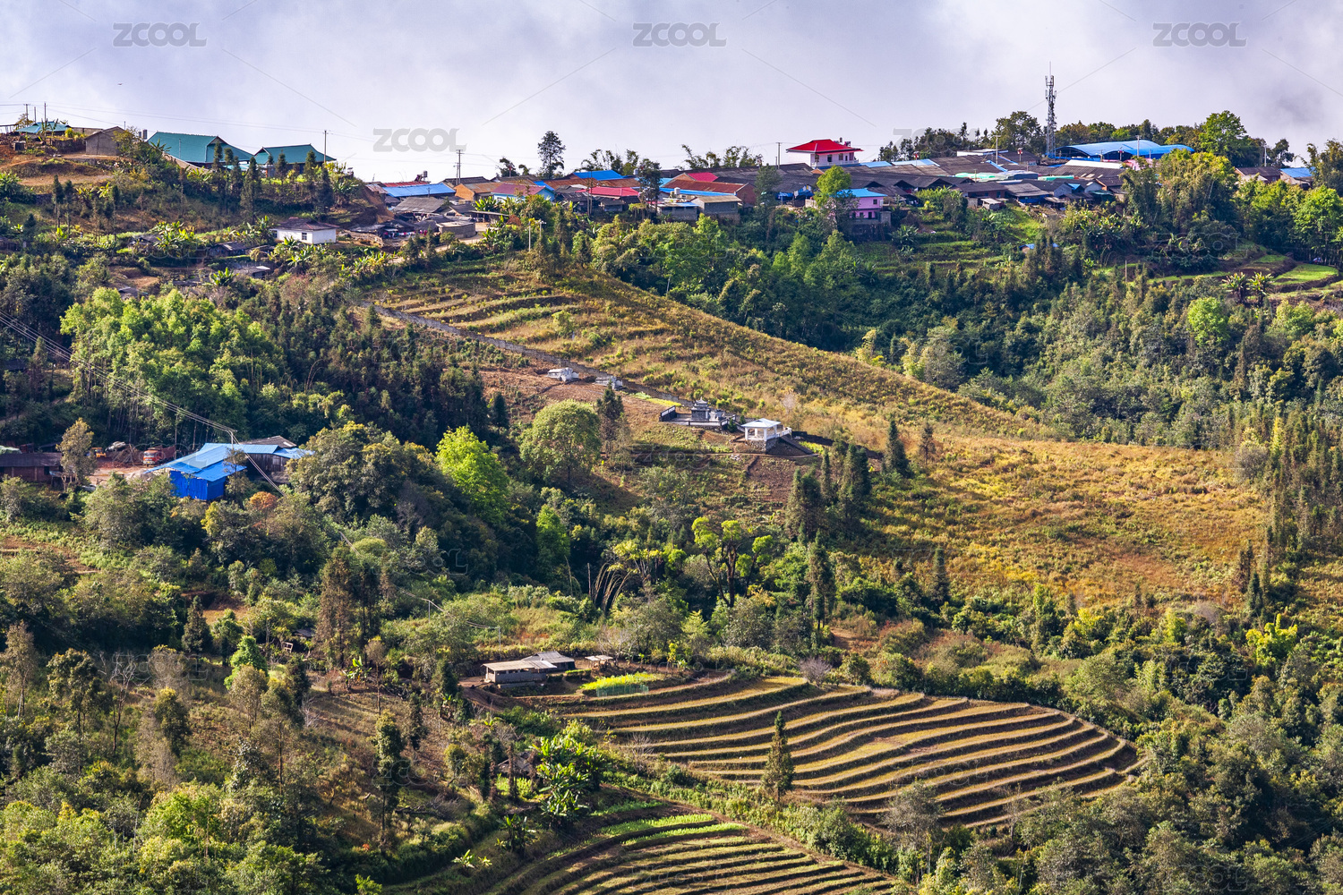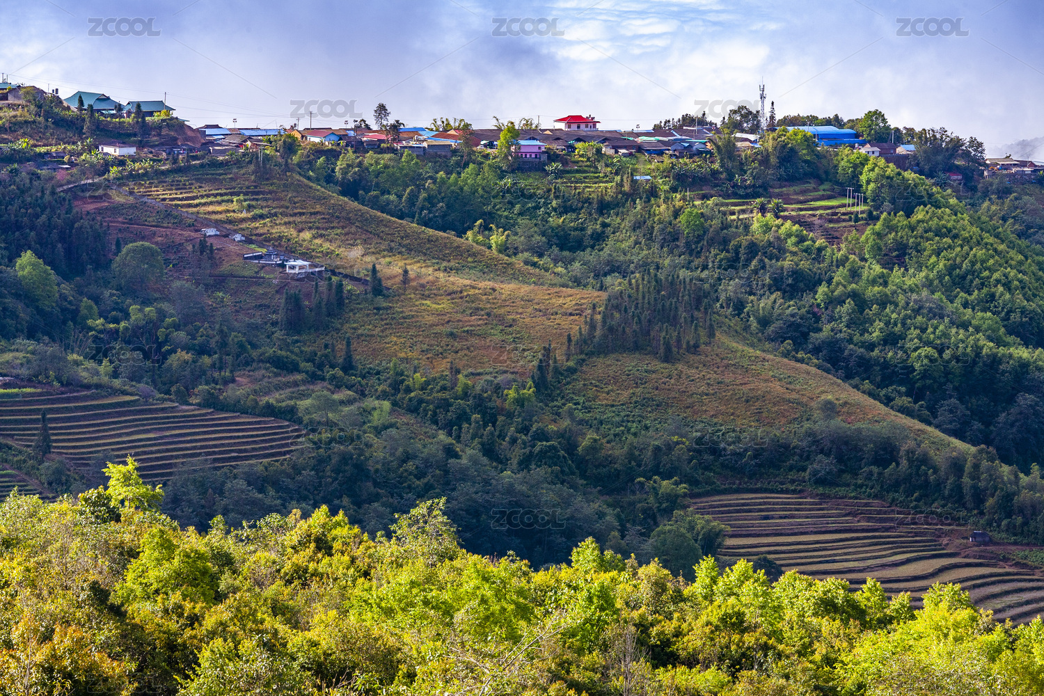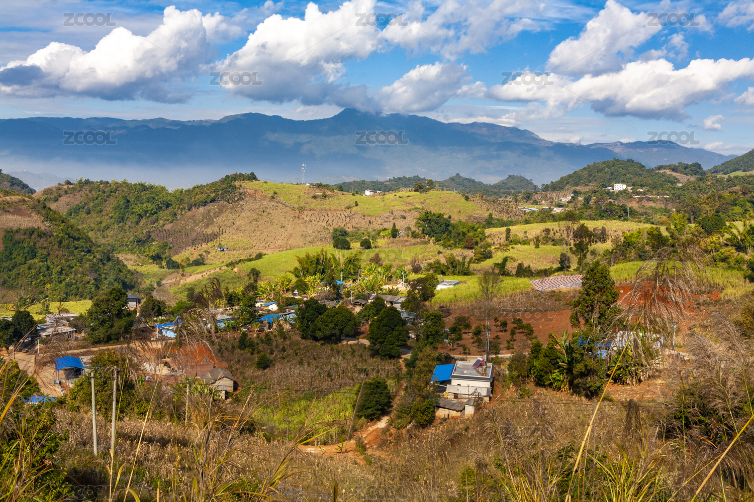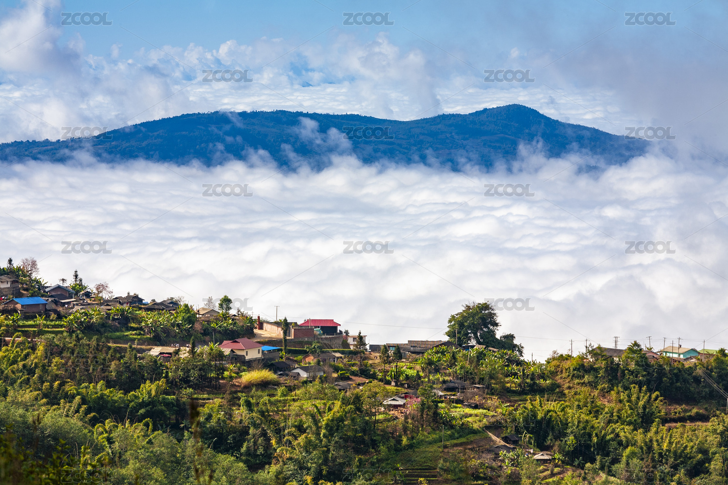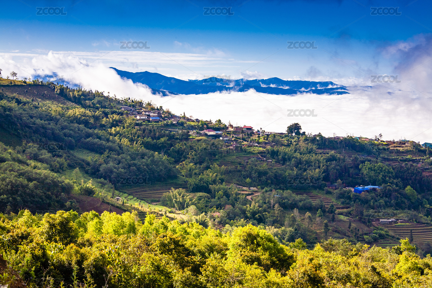 中國云南滄源縣到永和口岸中緬邊境的村莊和云海