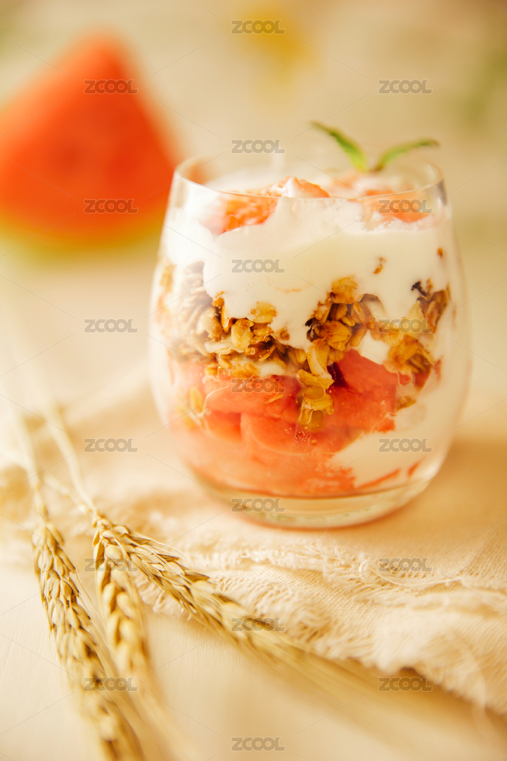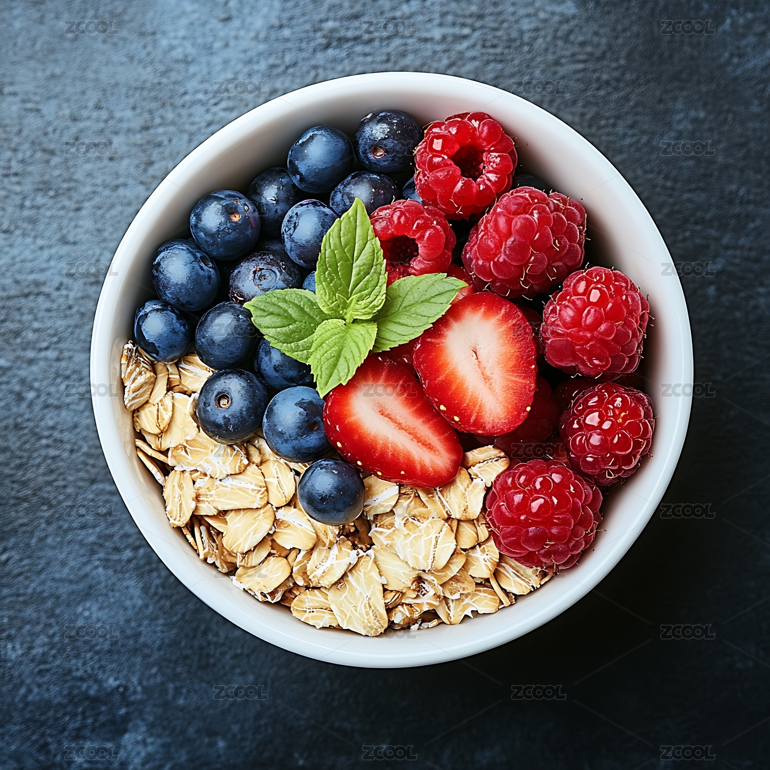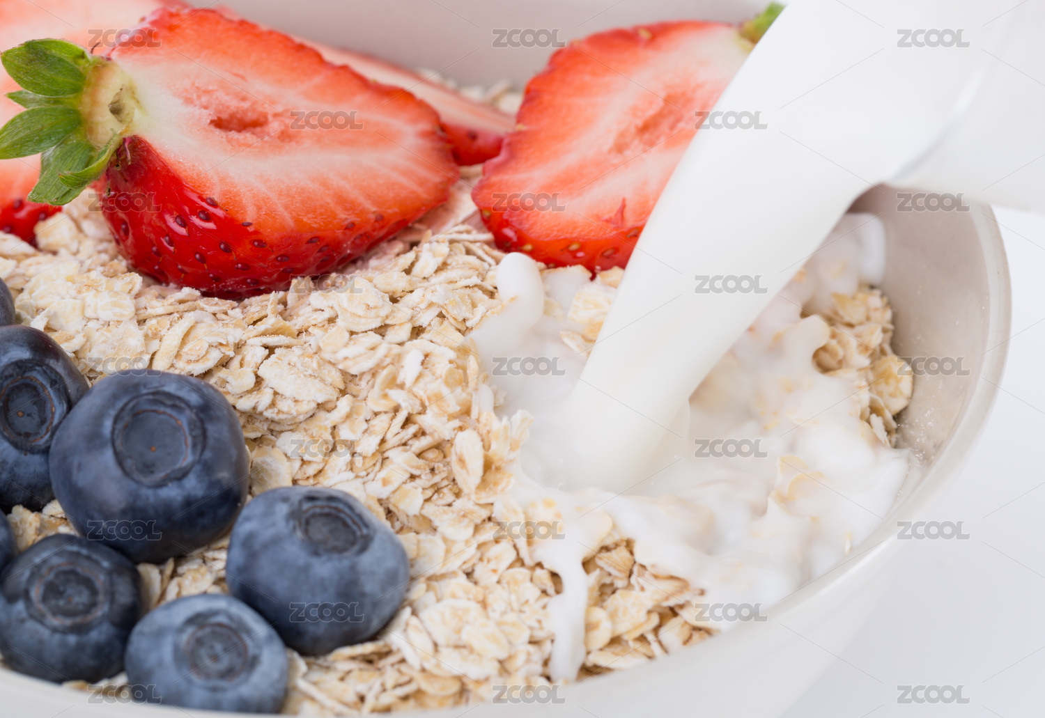 牛奶燕麥粥和溏心煎蛋及水果早餐