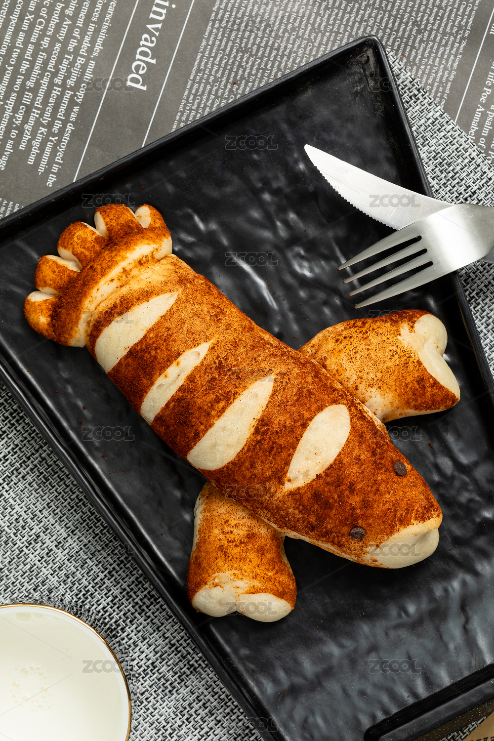黑色盤子上的小龍蝦軟歐包