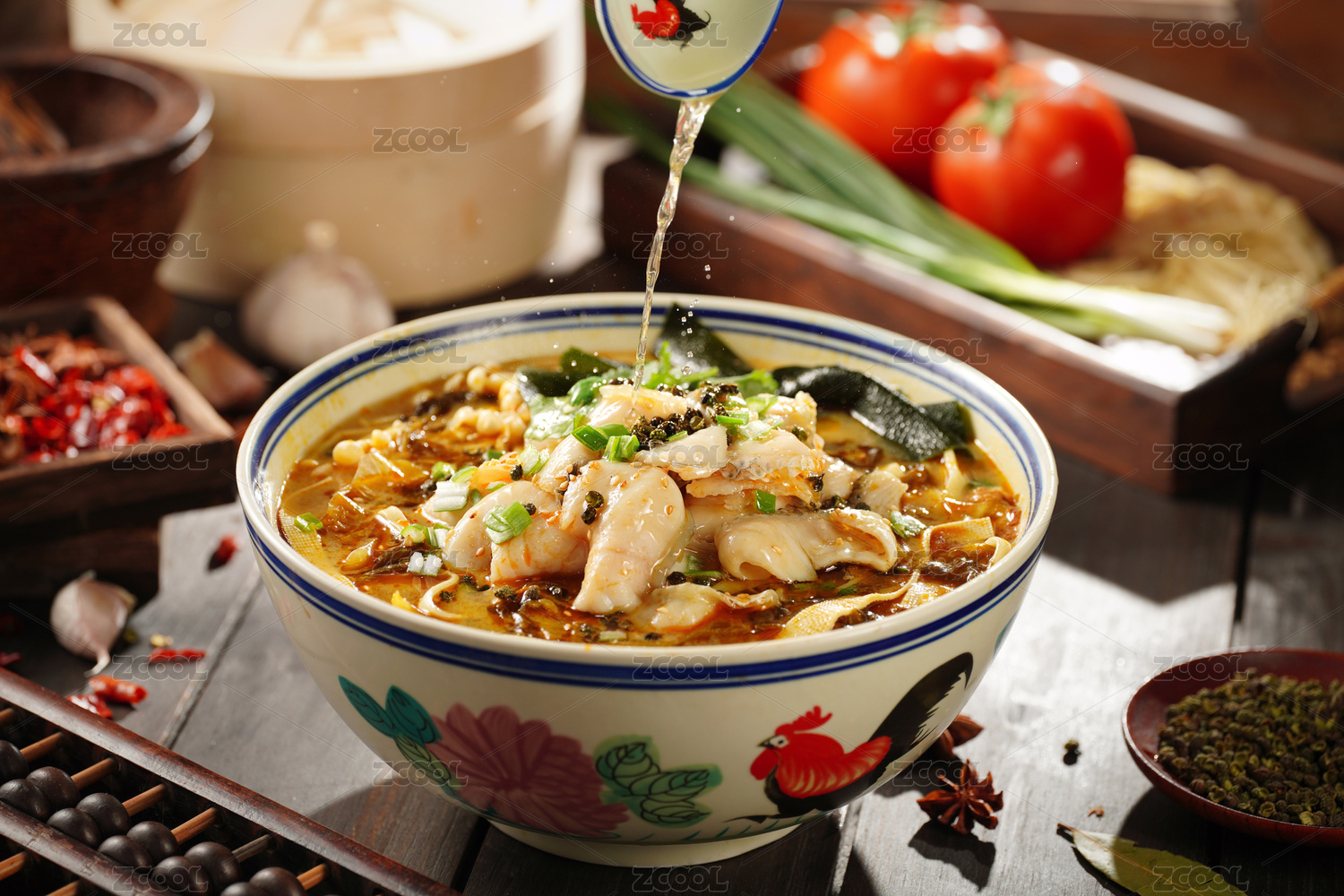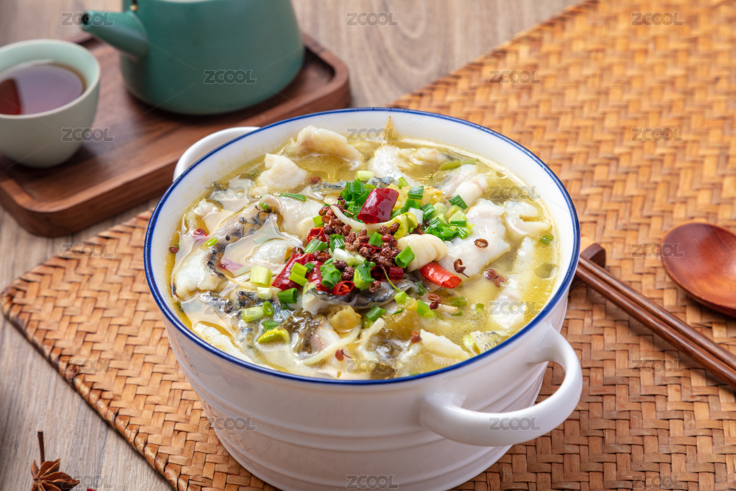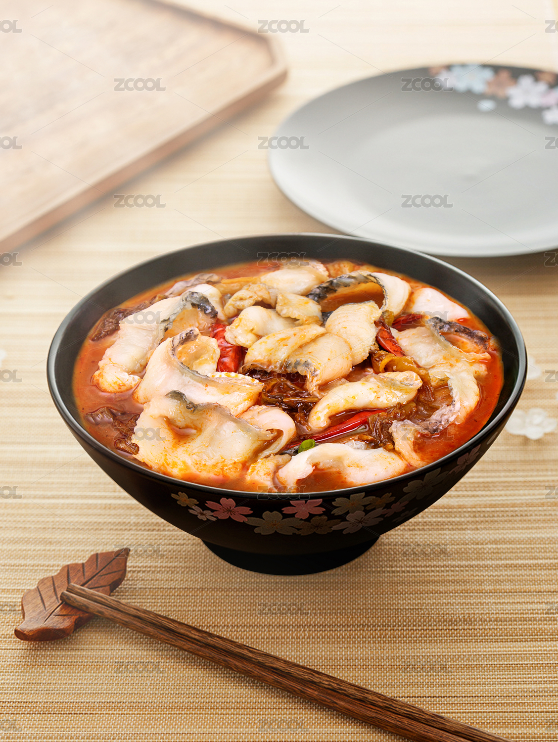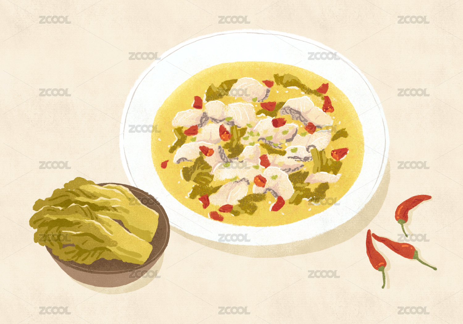 酸菜魚黑魚片酸菜辣椒美食插畫