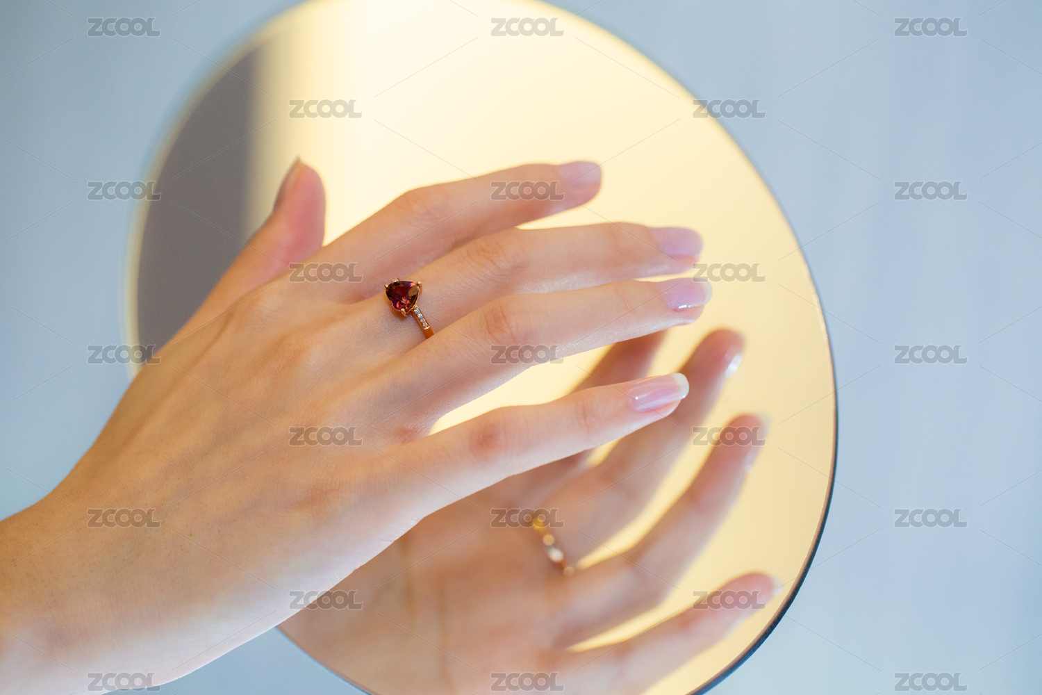 戴戒指的手放在鏡子上