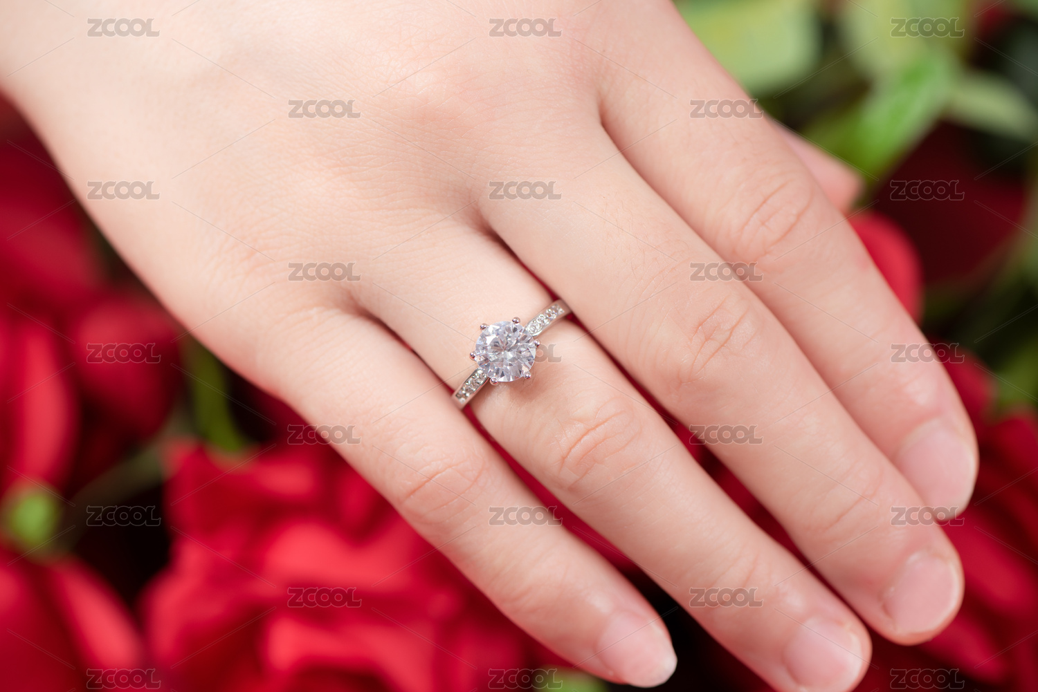 鉆石戒指戴在女人手上