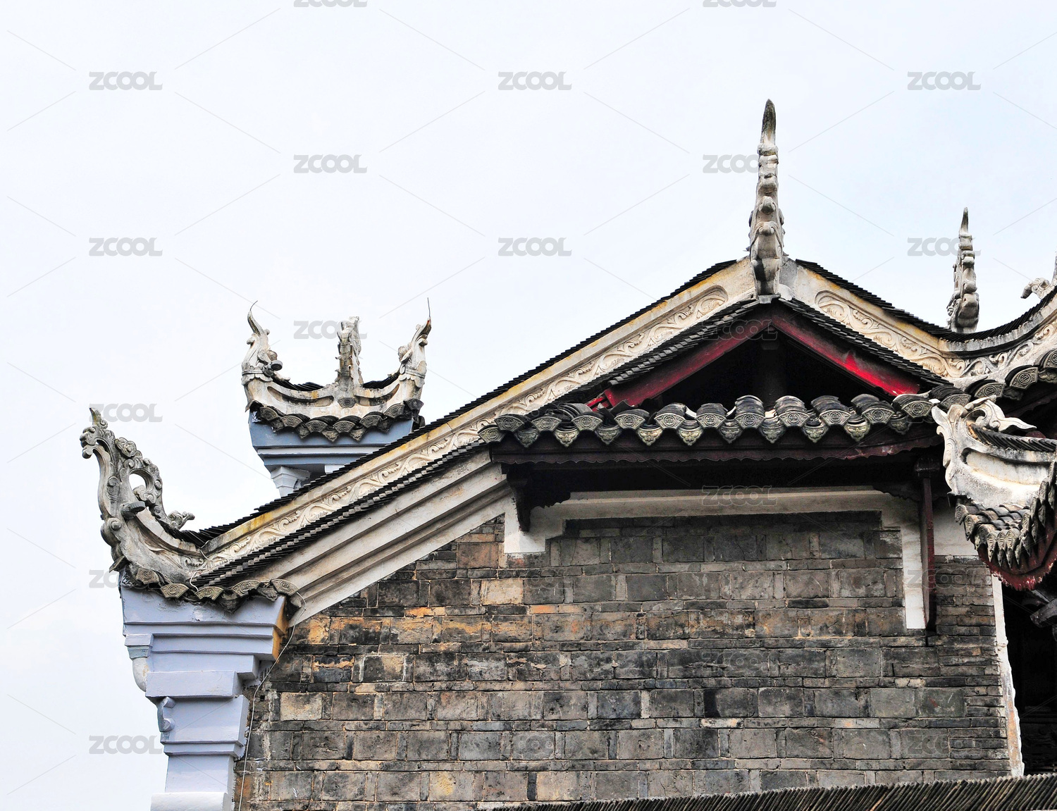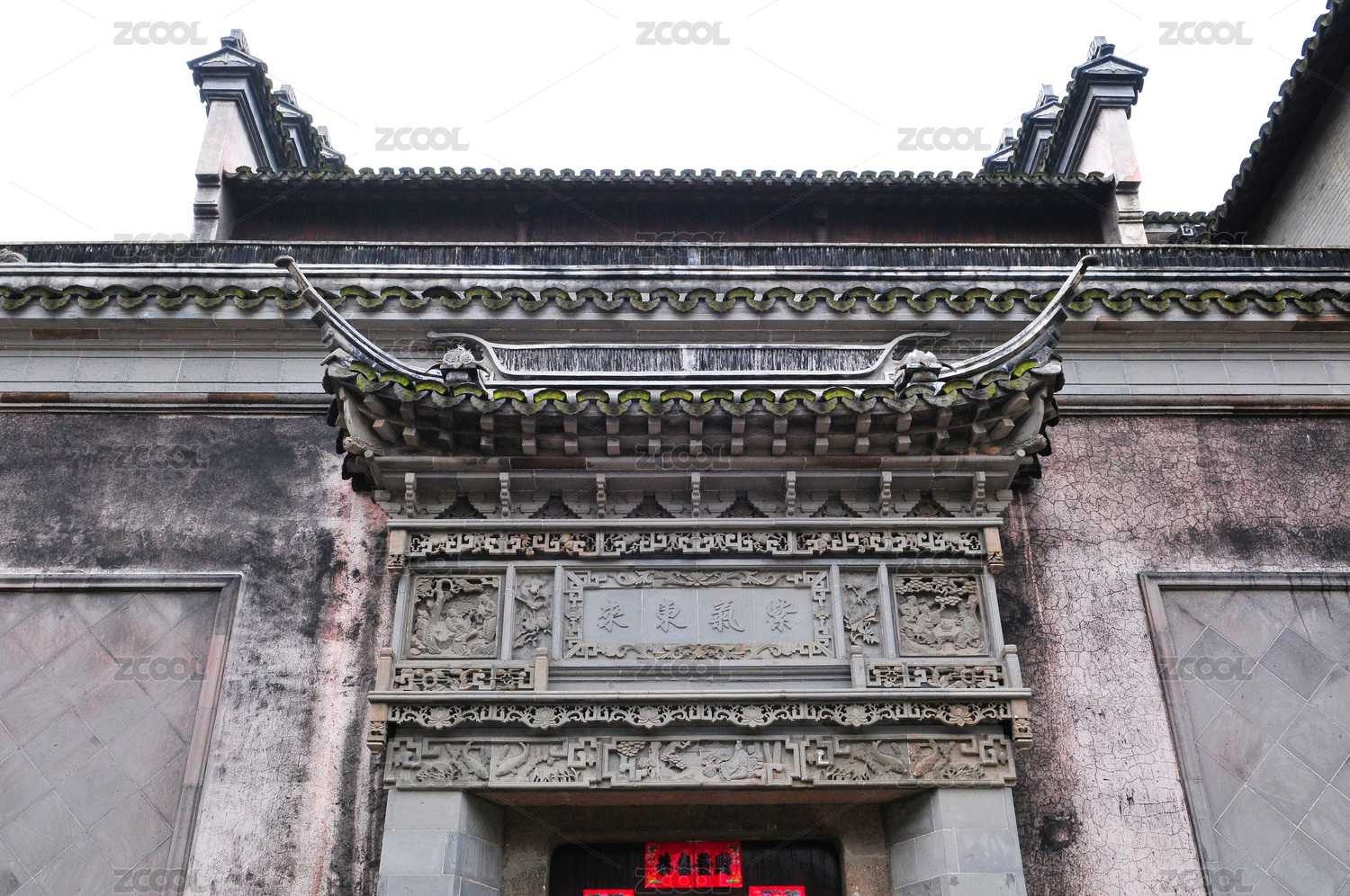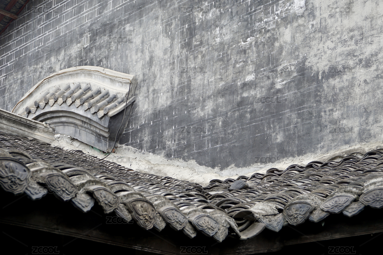 四川成都洛帶古鎮(zhèn)民居天井青瓦屋頂及防火墻