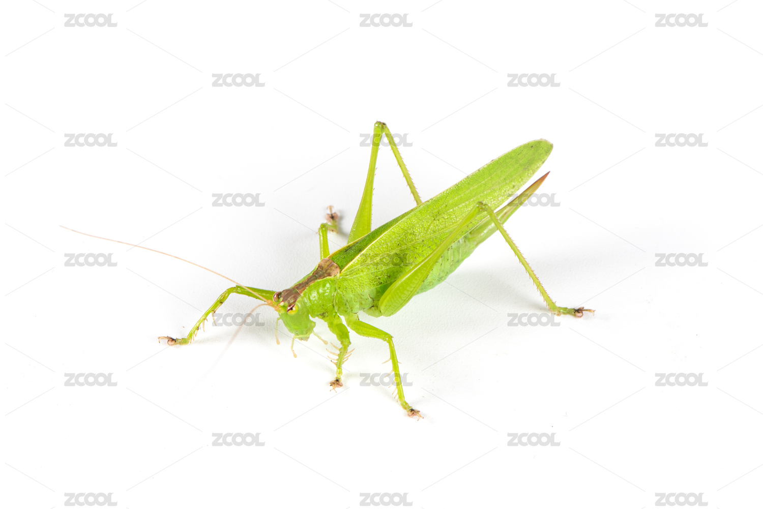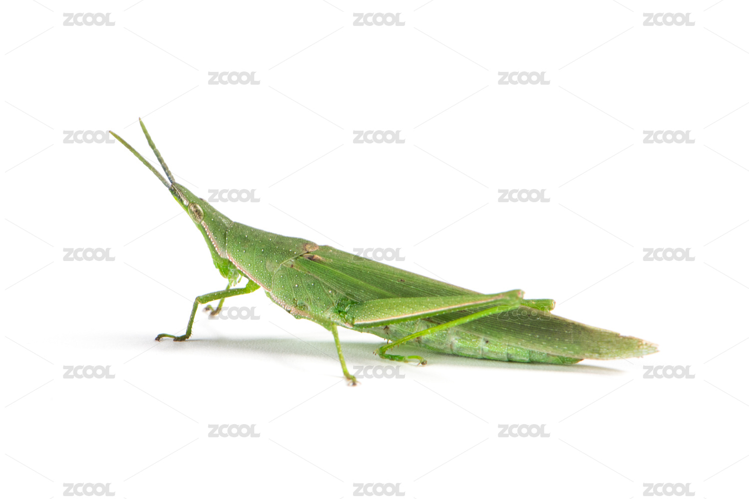 白色背景上的一只綠色螞蚱