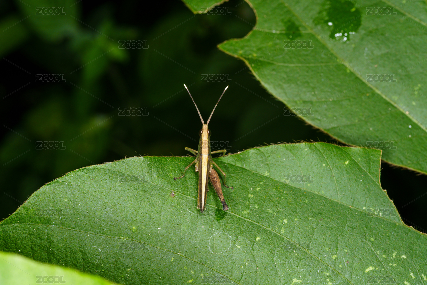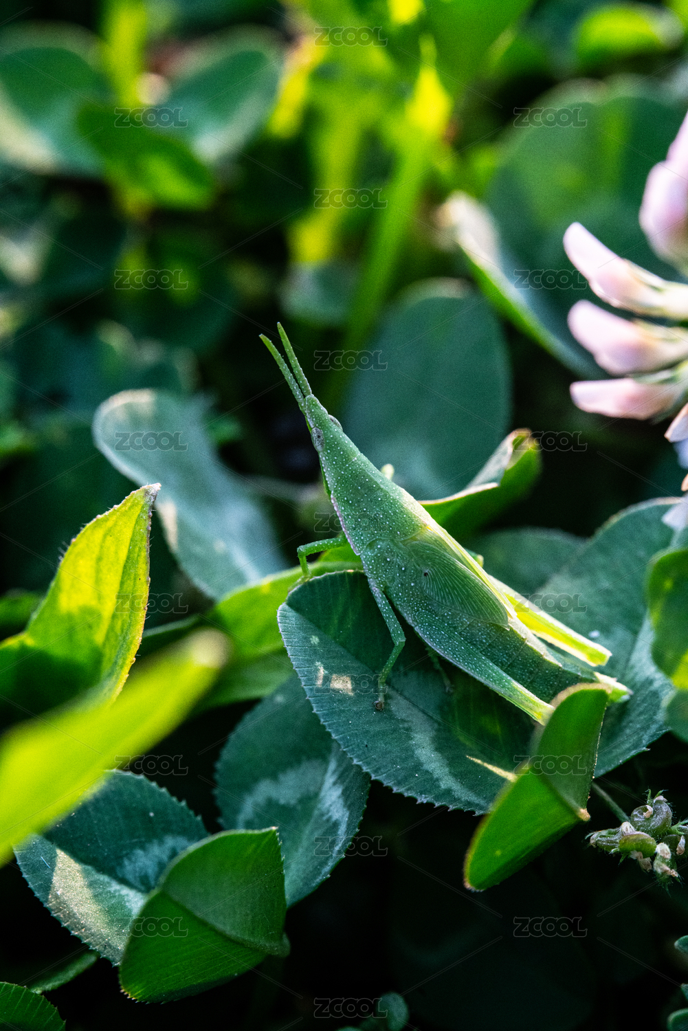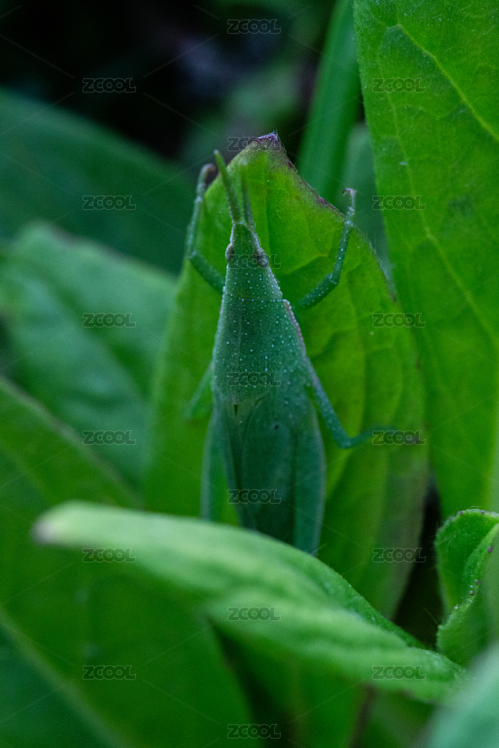 綠葉上的螞蚱特寫