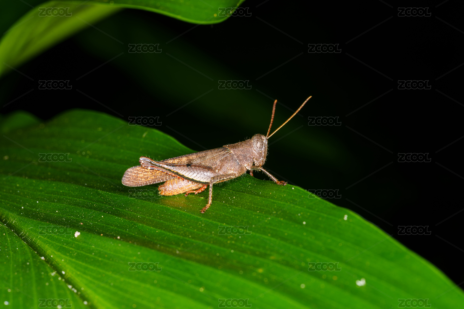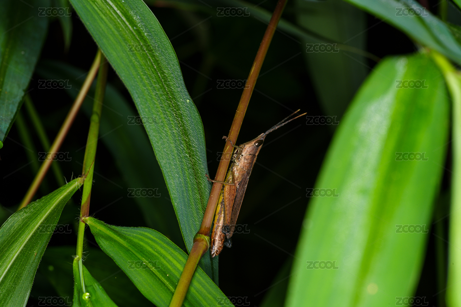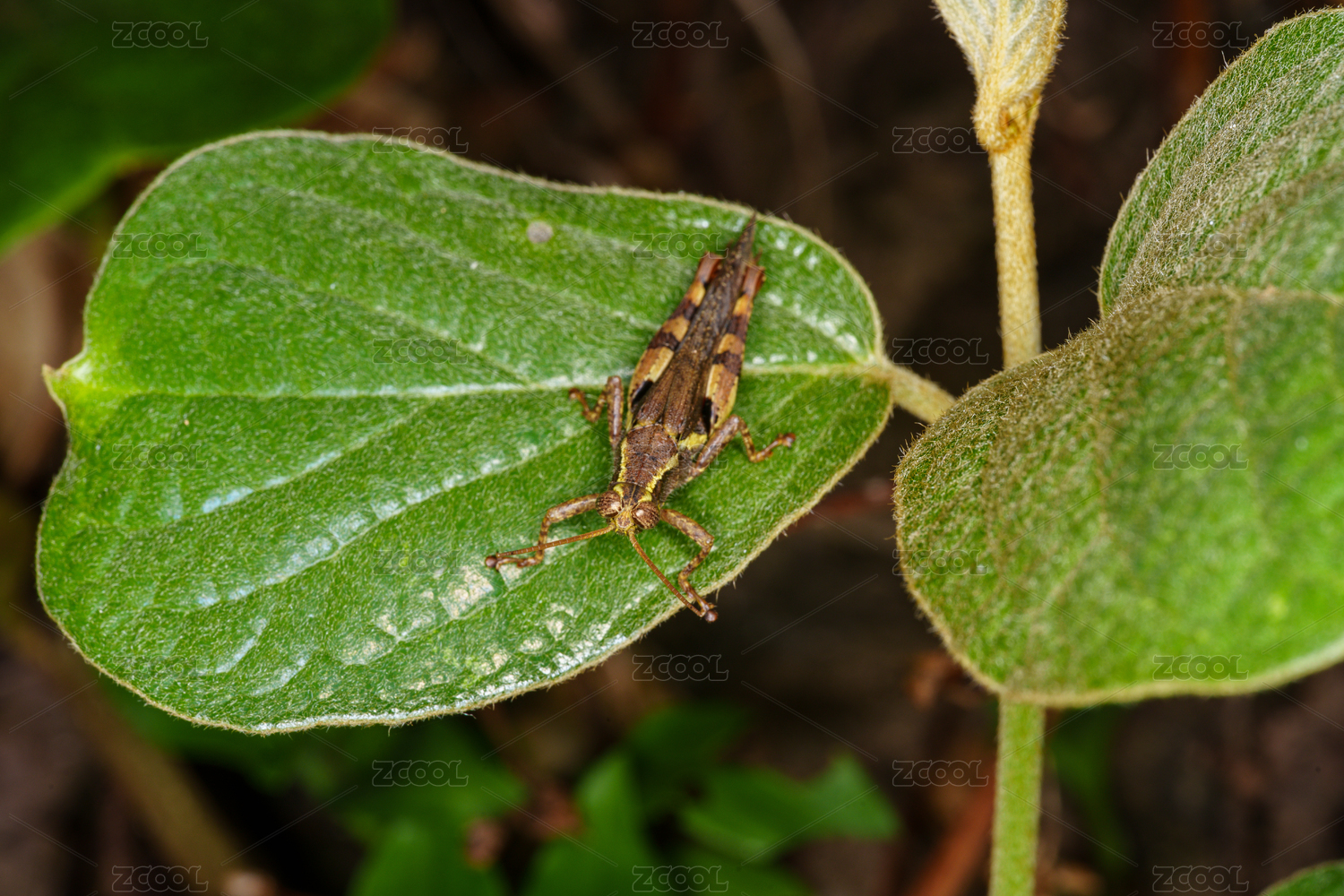 綠葉上的螞蚱特寫
