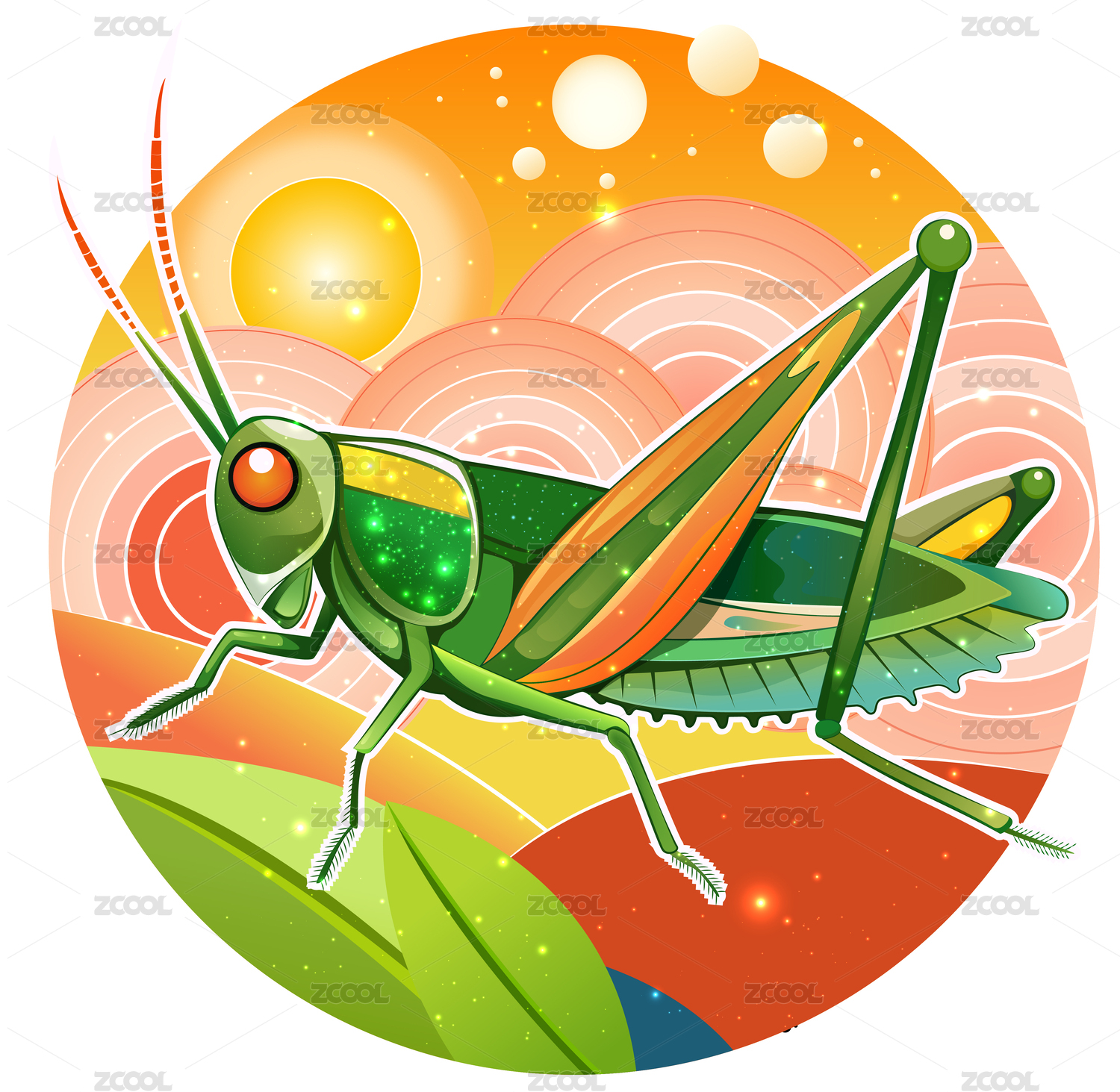 一只身披星空的綠色螞蚱
